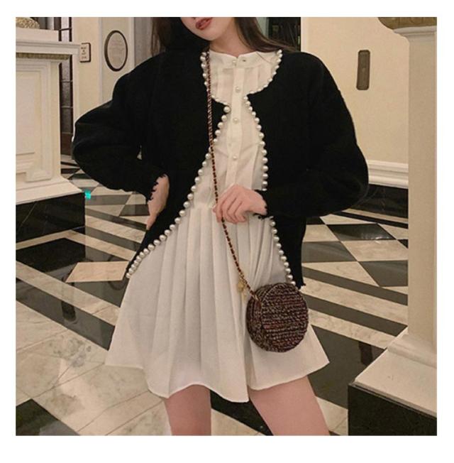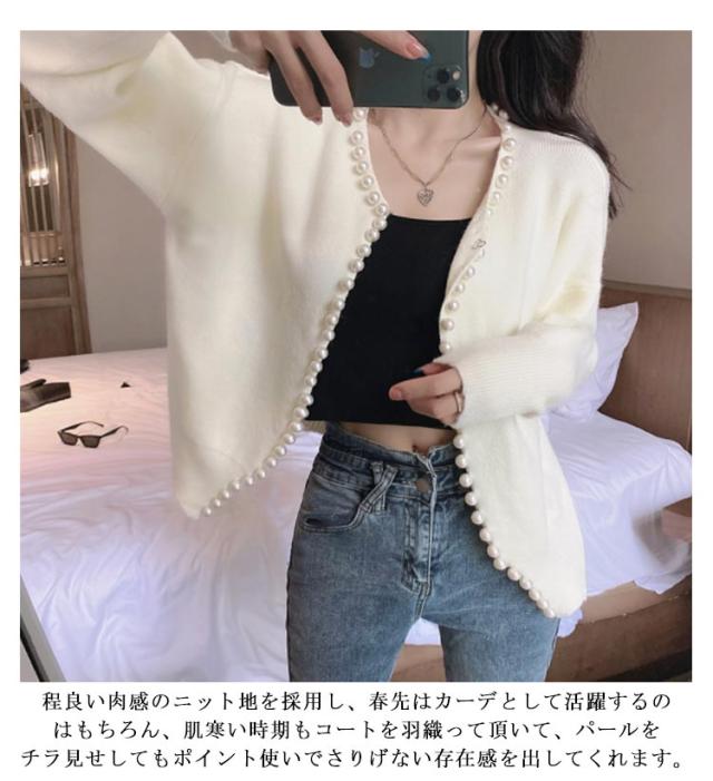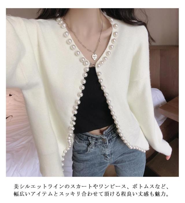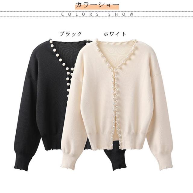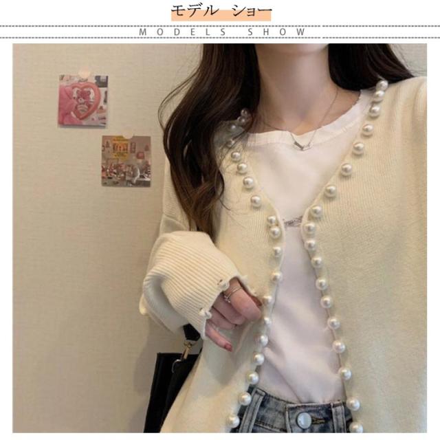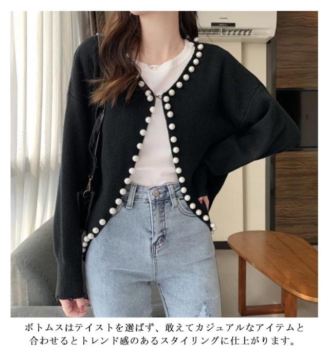 ニット カーディガン パール パールボタン カーディガン レディース 秋 冬 秋冬 長袖 ニットカーデ ニットセーター トップス クルーネック 羽織り 通勤 アウター ゆったり 大きいサイズ 秋冬 普段着 オフィス 着回し エレガント きれいめ カジュアル フェミニン OL 送料無料