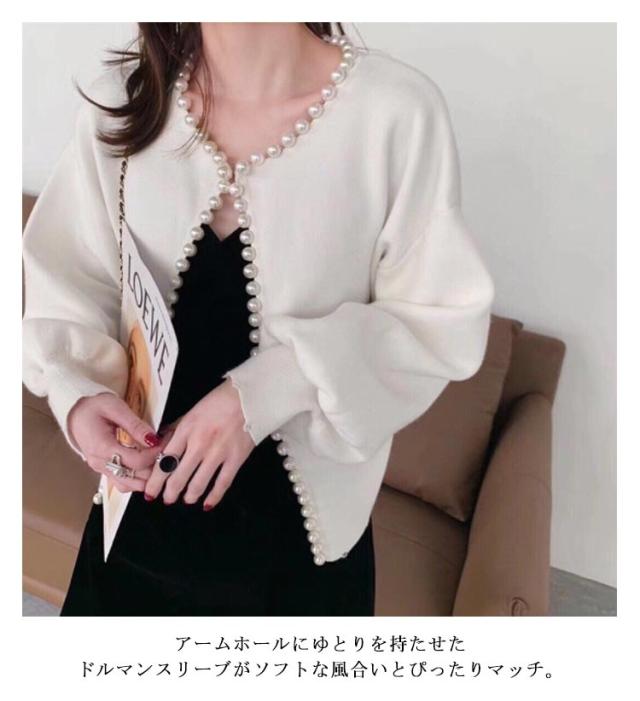 | ネックラインからフロントにかけて、贅沢に施したパールが大人上品な印象を与えてくれる1着。 アームホールにゆとりを持たせたドルマンスリーブがソフトな風合いとぴったりマッチ。 美シルエットラインのスカートやワンピース、ボトムスなど、幅広いアイテムとスッキリ合わせて頂ける程良い丈感も魅力。 程良い肉感のニット地を採用し、春先はカーデとして活躍するのはもちろん、肌寒い時期もコートを羽織って頂いて、パールをチラ見せしてもポイント使いでさりげない存在感を出してくれます。 シアー素材のハイネックインナーや、シンプルなTシャツと合わせたり、季節に応じてキャミソールやタンクトップと合わせても◎ ボトムスはテイストを選ばず、敢えてカジュアルなアイテムと合わせるとトレンド感のあるスタイリングに仕上がります。 お好みでキャミワンピースやジャンパースカートに羽織って頂くのもおすすめです。 | |