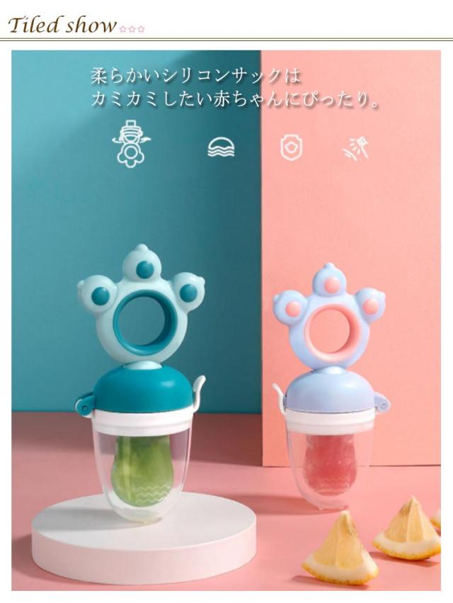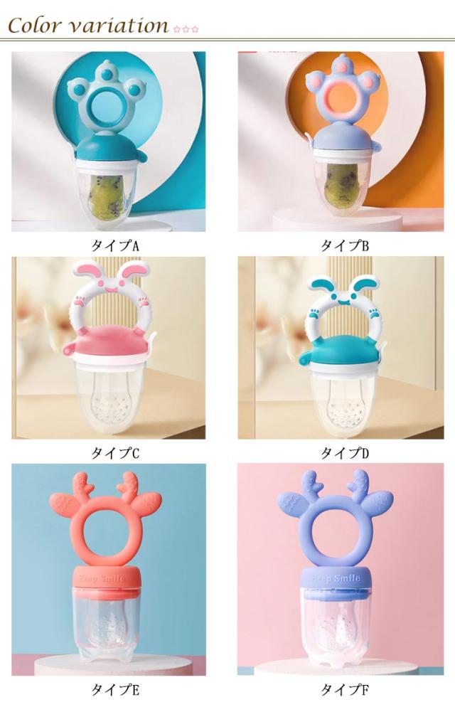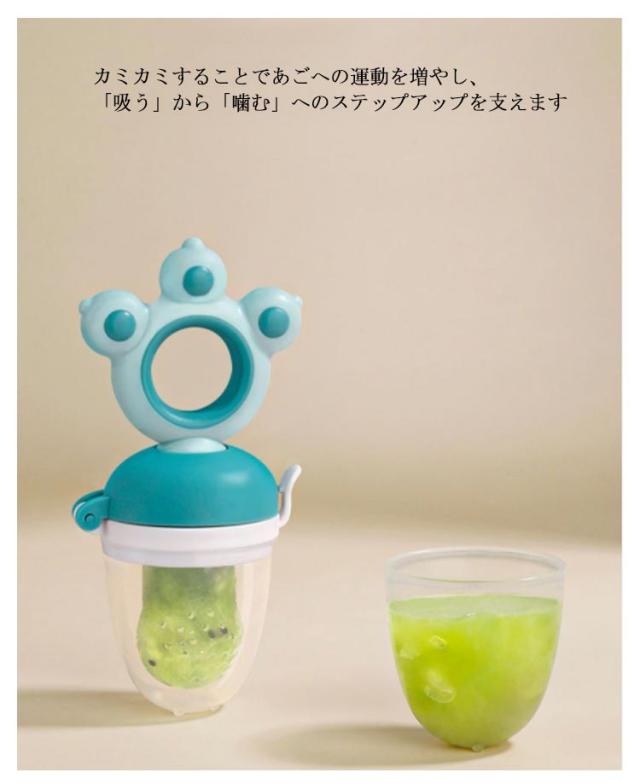 | 離乳食や果物を入れてお食事フィーダー 柔らかいシリコンサックはカミカミしたい赤ちゃんにぴったり。 カミカミすることであごへの運動を増やし、「吸う」から「噛む」へのステップアップを支えます おしゃぶりが苦手な赤ちゃんも楽しくおしゃぶりが出来ます、おしゃぶりの中にフルーツなどを入れるだけ!! キャラクター型持ち手はシリコン製で歯固めとしても 果汁のみ吸えますので喉詰りがなく安心してご利用頂けます | |