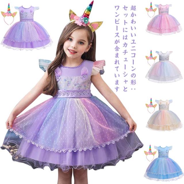 送料無料 ハロウィン ユニコーン 女の子 ワンピース ドレス 精霊 ハロウィン衣装 ユニコーン コスプレ ティンカーベル フェアリー チュチュ カチューシャ付き 精霊 キッズ コスチューム 変装 仮装 服 翼 虹色 かわいい 子ども パーティー 演出服 ステージ イベント用品 0-5歳