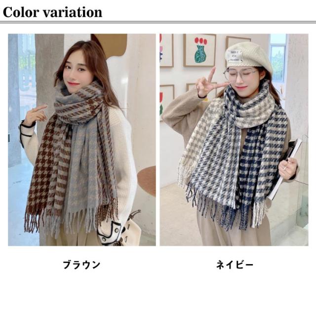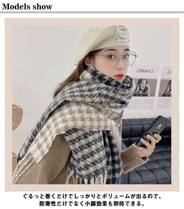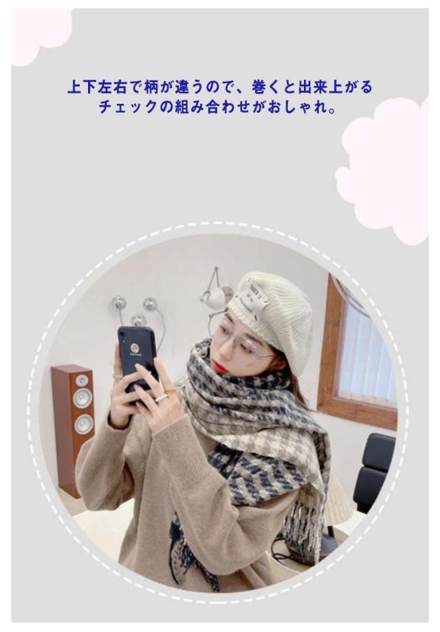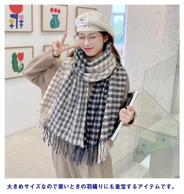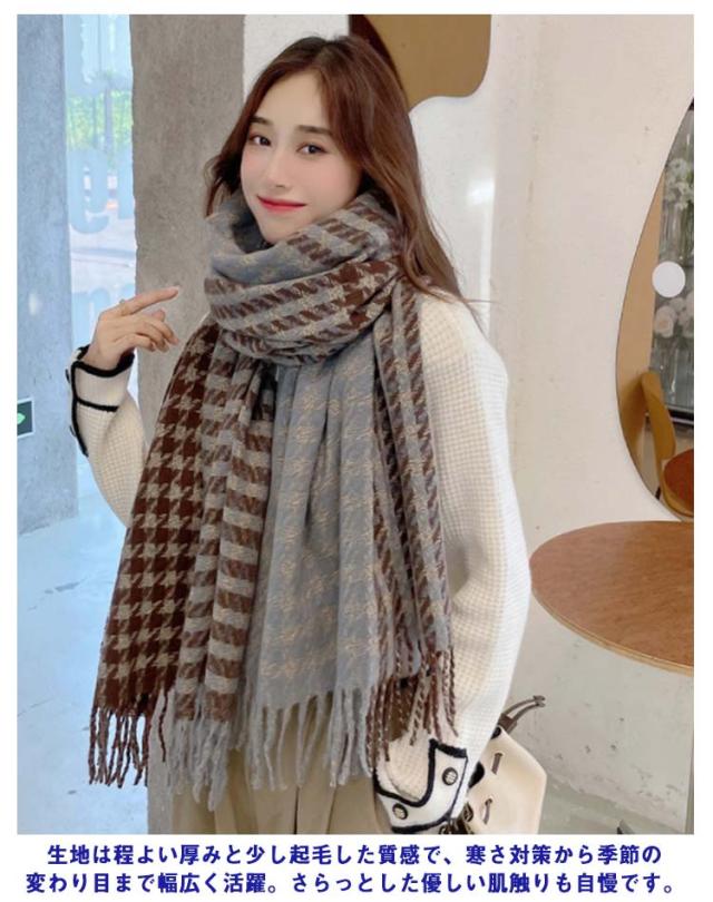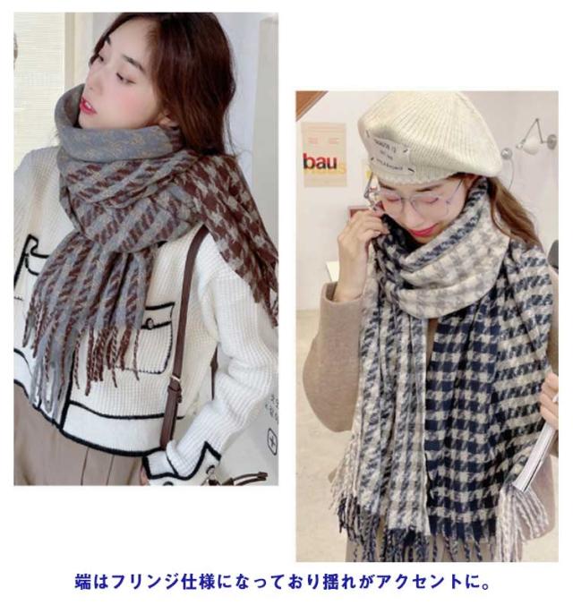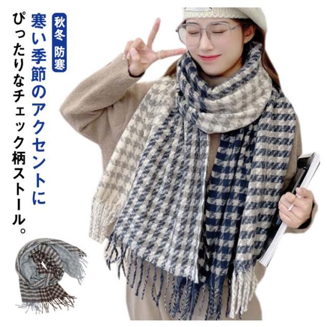 ストール マフラー リバーシブル 大判 厚手 チェック グレンチェック レディース ブランケット ひざ掛け 羽織り ショール 千鳥格子 2way フリンジ 秋冬 防寒 おしゃれ ボリューム 小顔 首巻 シンプル 可愛い クリスマス プレゼント 送料無料