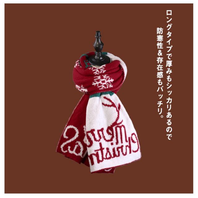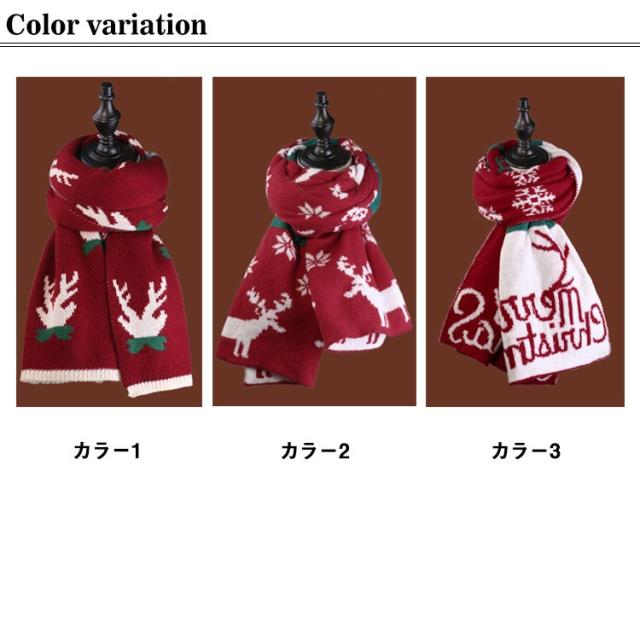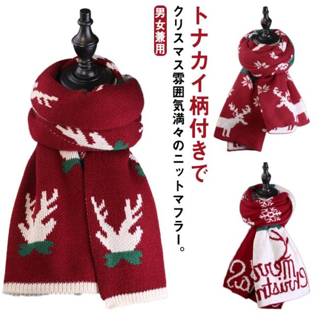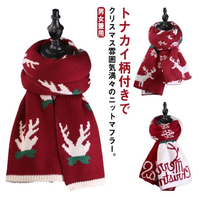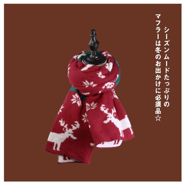 マフラー レディース クリスマス ニットマフラー トナカイ柄 大判 ストール ネックウォーマー 厚手 秋冬 暖かい 寒さ対応 防寒 保温 カジュアル 可愛い おしゃれ クリスマス コスチューム ファッション小物 彼氏 彼女 ギフト プレゼント 送料無料