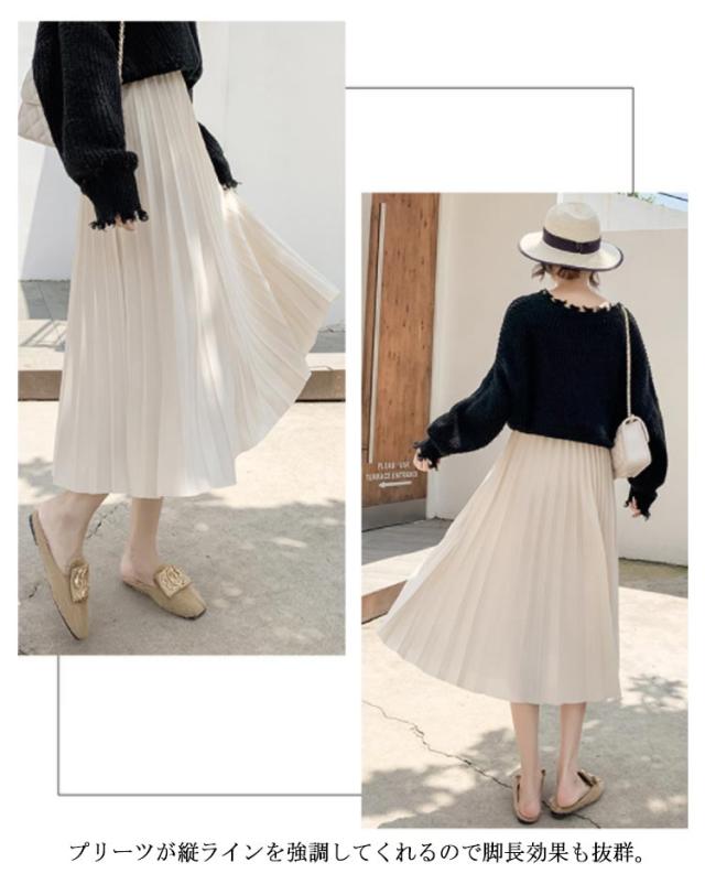 スカート プリーツスカート ロング 春 秋 冬 ミモレ丈 ひざ丈 レディース ウエストゴム 無地 ブラック ホワイト 黒 白 ベージュ オフィス 結婚式 フォーマル きれいめ 大人 可愛い 秋冬 送料無料