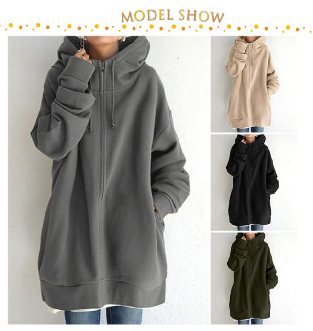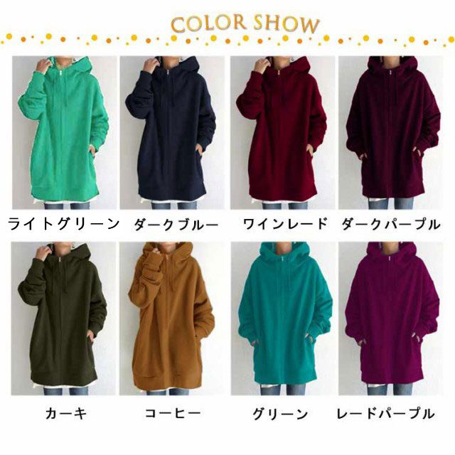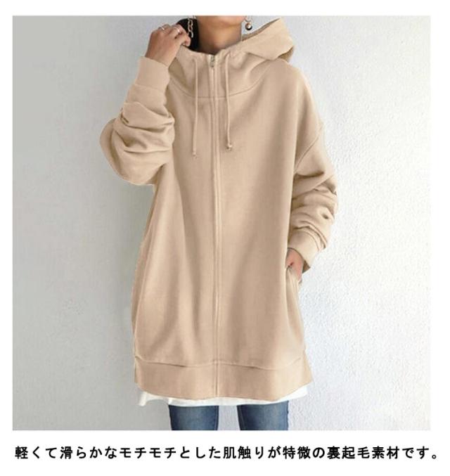パーカー レディース 長袖 スウェット ロング丈 パーカー ボリュームネック ハイネック フード付き ジップアップパーカー 無地 裏起毛 ロングカーディガン ロングパーカー トップス 体型カバー 着痩せ あったか おしゃれ ゆったり 大きいサイズ 防寒 秋冬 春