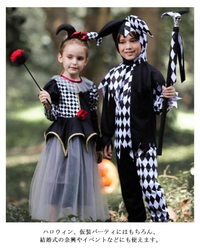 ハロウィン コスプレ ピエロ 子供衣装 ハロウィン 仮装 コスチューム セット キッズ ピエロガール 女の子 男の子 魔法子ども ハロウィン衣装 コスプレ衣装 cosplay ゴスロリ キュート ミニワンピ ドレス 2点セット