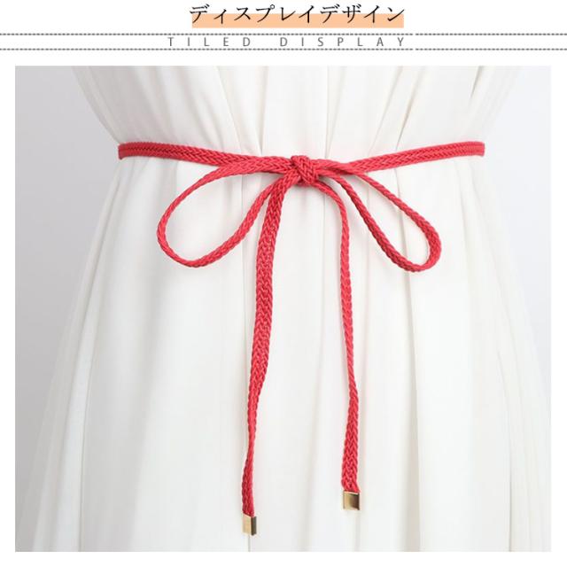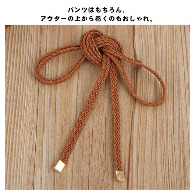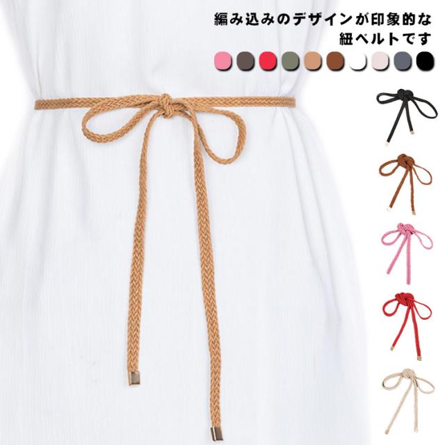 ベルト レディース 細ベルト 編み込み 紐ベルト チュニック シャツ ワンピース ドレス ウエストマーク ロープベルト 細め 細い ナローベルト ひも 腰ひも 飾りベルト 巻きベルト 簡単 シンプル ナチュラル カジュアル 上品 可愛い おしゃれ 春 夏 秋 冬 送料無料