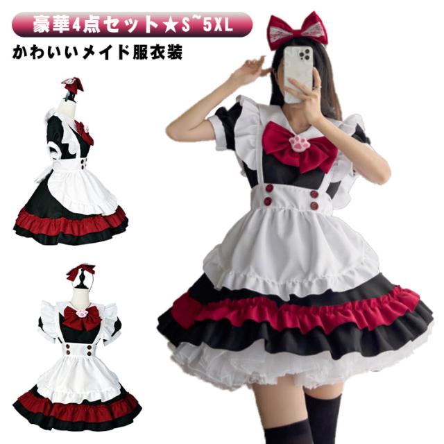 | ハロウィンやイベントになど様々な用途で♪ かわいいメイド服衣装 豪華4点セット★ S~5XL トータルコーディネートができるうれしい4点セットが魅力! ハロウィンパーティーを盛り上げてくれること間違いなしの一品です♪ 普段のおでかけのおしゃれにはもちろん、原宿系夢かわいい系ガーリー、森ガール、姫系等ファッションがお好きな方や、 ロリータ系コスプレコスチューム衣装のドレス、ライブイベントでの双子コーデ等にもおすすめです。 | |