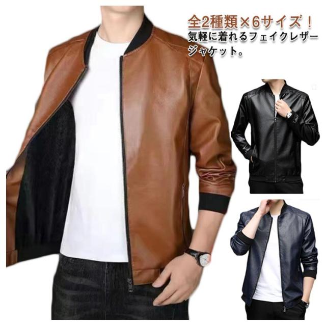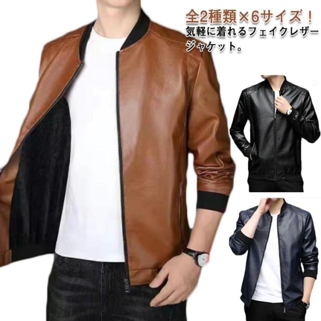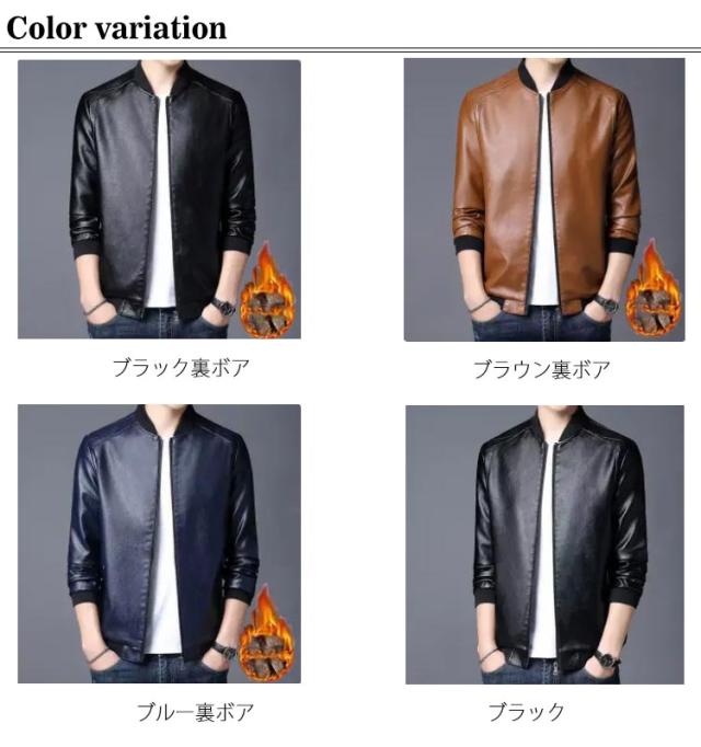 メンズブルゾン ジャケット フェイクレザー カジュアルジャケット スタジャン ライダースジャケット 合皮ジャケット メンズ 男性用 裏ボア 防寒 春 秋 冬 大きサイズ ブラック ブルー ブラウン