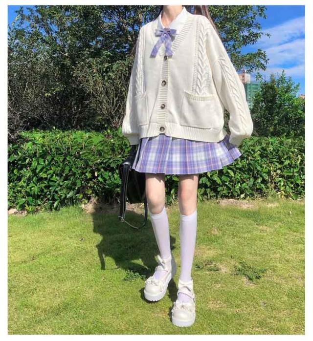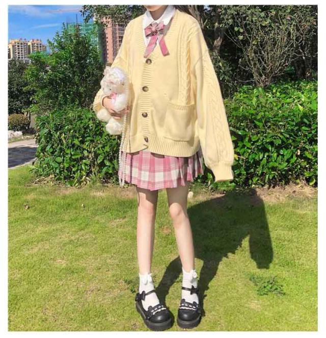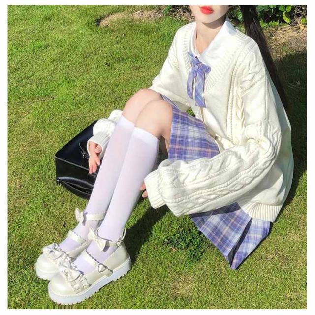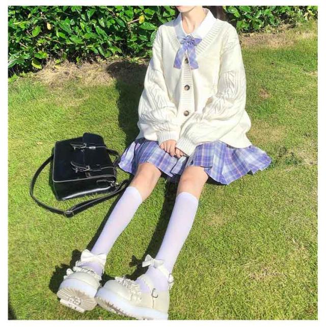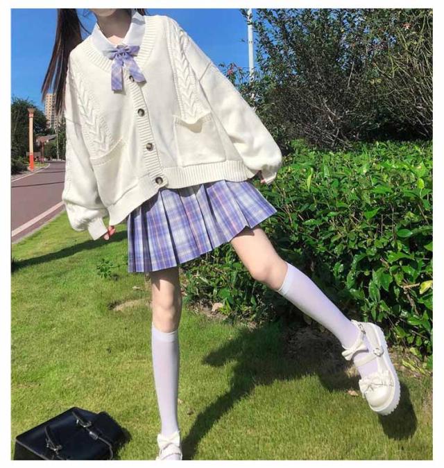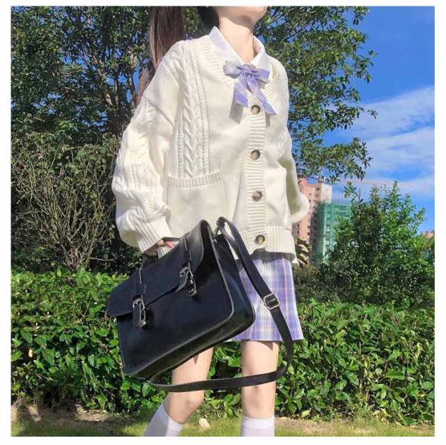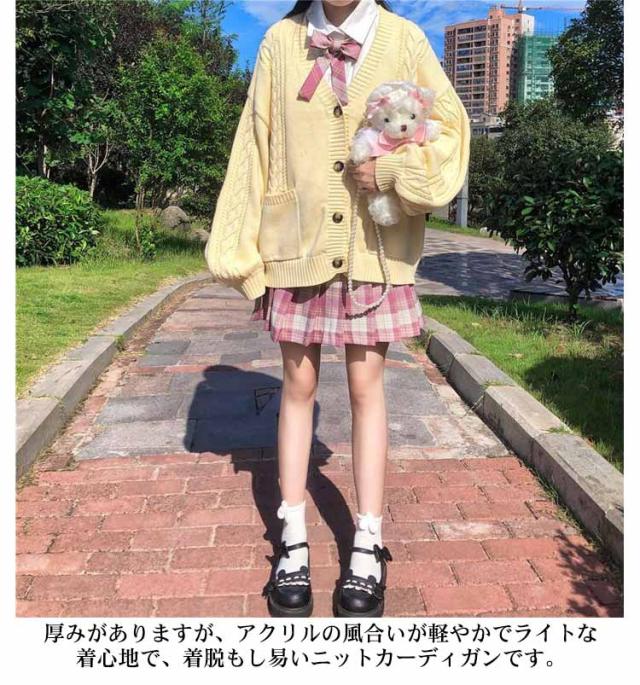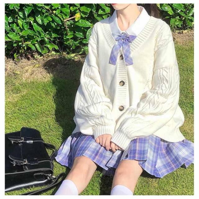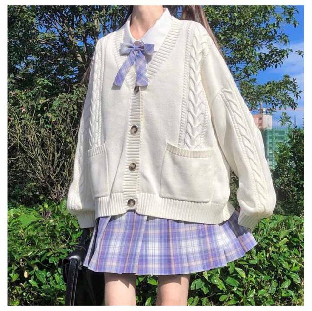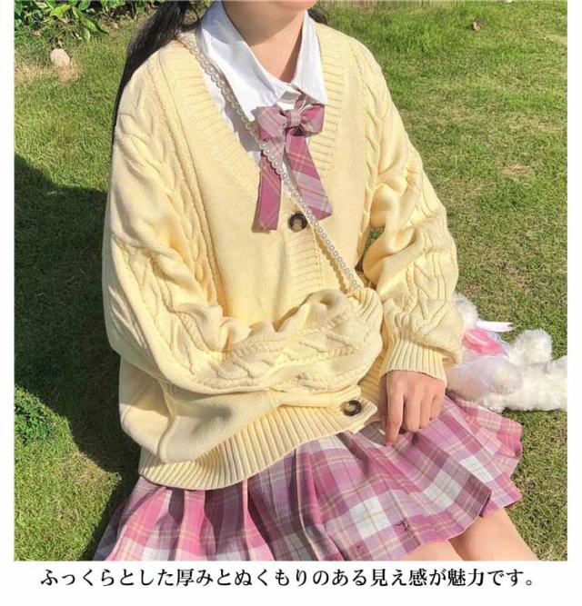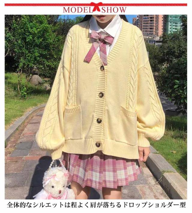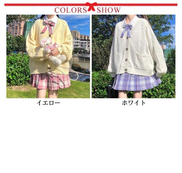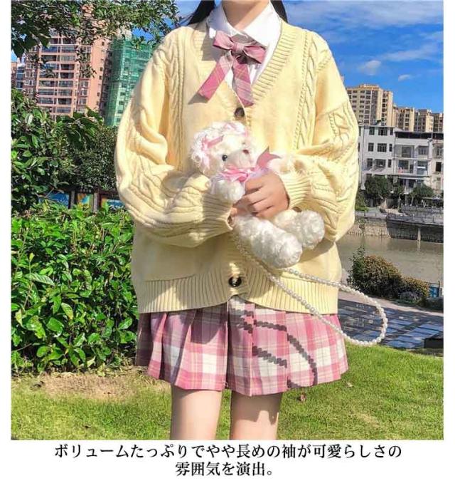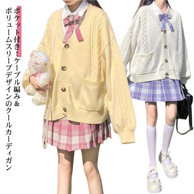【送料無料】スクールカーディガン ニットカーディガン 秋冬 学生服 学校 制服 Vネック ボリューム袖 中学生 高校生 女子 女の子 羽織り アウター スクールセーター ケーブル編み 秋服 春 通学 デイリー ホワイト 白 ストレッチ