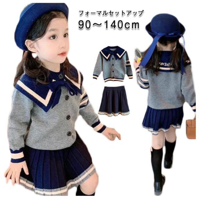 入学式 卒業式 スーツ 女の子 120 130 子供服 女の子 セットアップ jk 制服 セーター 襟付き セーラー風 スカート ジャケット 入園式 卒園式 スーツ 女の子 フォーマル ガールズ 幼稚園 韓国服 発表会 結婚式 グレー 90 100 110 120 130 140cm