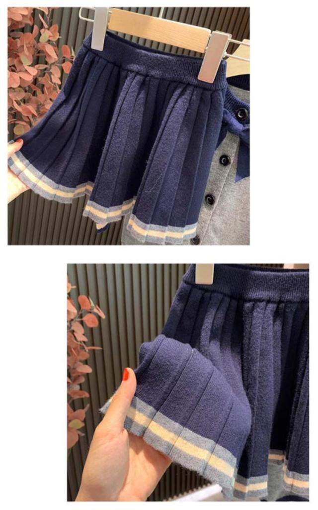 | 可愛いお嬢様に欠かせない学院風セットアップ、お洒落なデザインは優雅な気質がよく表現されます。 セーラー服のようなこだわりのストライブのネックがワンポイント♪ 歩くたびに綺麗に広がるプリーツスカートは女性らしさを演出。 一着だけで春秋に快適に過ごしますが、寒い冬時にセーターやコートなどと合わせることは最適。 普段着、通学通園、お出かけはもちろん、七五三、お誕生日、パーティー、結婚式、入園や入学・卒園や卒業などのイベントにもお使いいただけます。 | |