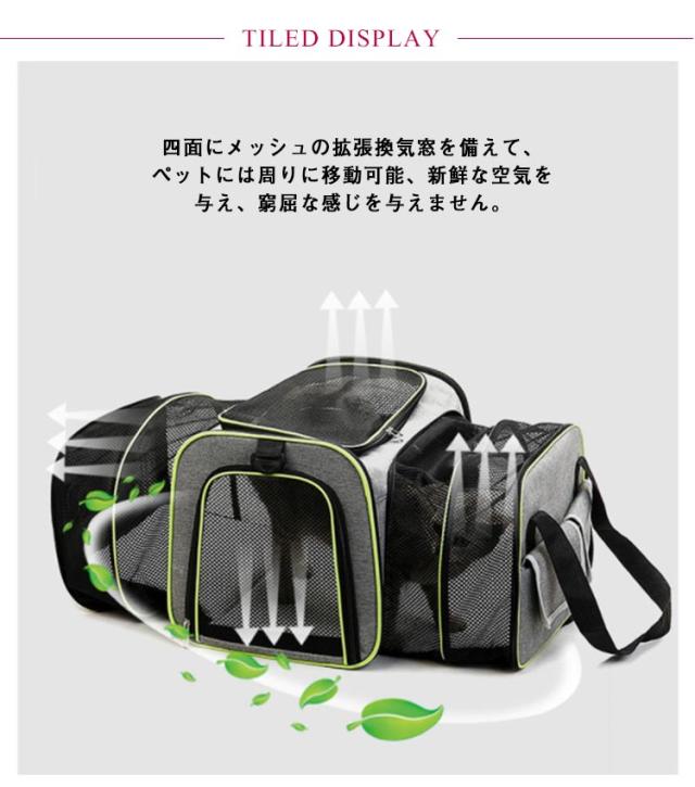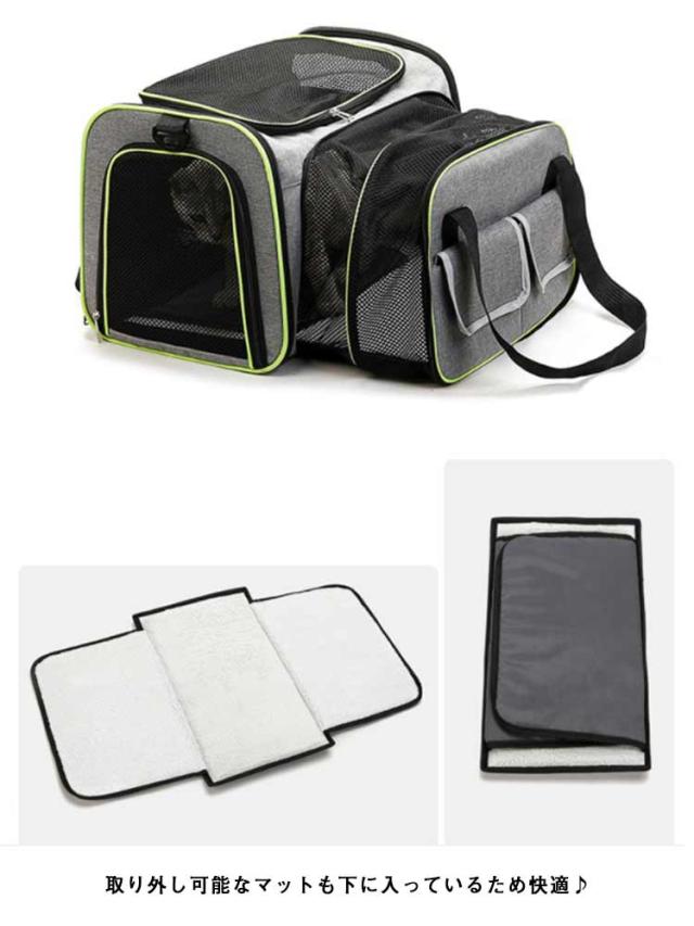 | 丈夫な仕組みで底部はしっかりして型崩れしないキャリーバック。 四面にメッシュの拡張換気窓を備えて、ペットには周りに移動可能、新鮮な空気を与え、窮屈な感じを与えません。 ペットキャリーバック、手持ちバック、ショルダーバッグなどにご利用いただけます。 折りたたみ可能、ファスナーで全オープンいただけます。 取り外し可能なマットも下に入っているため快適♪ | |