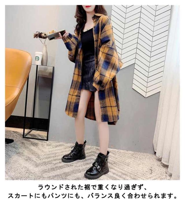 送料無料 チェックシャツ ロング チェックコート レディース コート チェック ネルシャツ ロング丈 チュニック丈 ドロップショルダー 長袖 シャツコート ジャケット アウター 羽織り ロングシャツ 長袖シャツ 大きいサイズ ゆったり