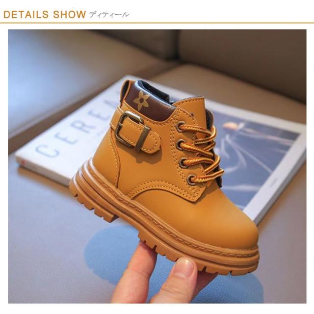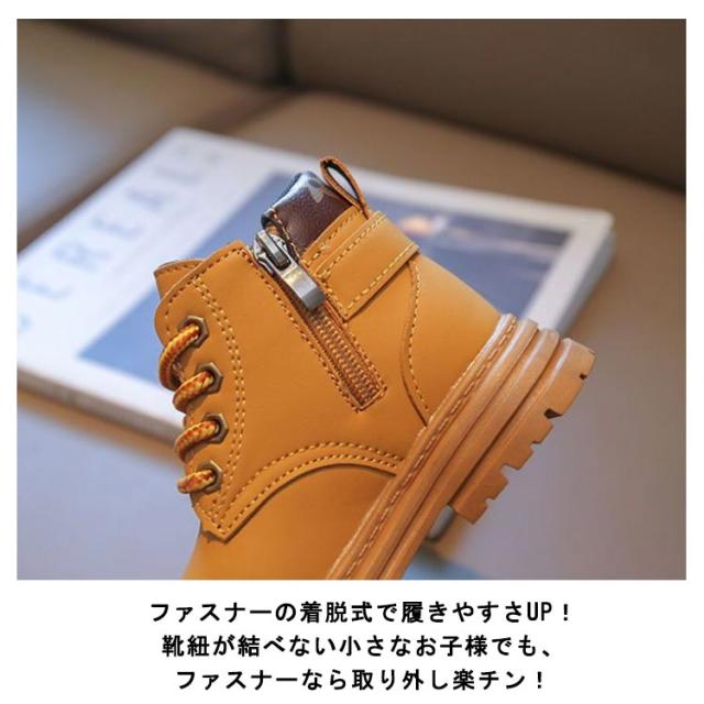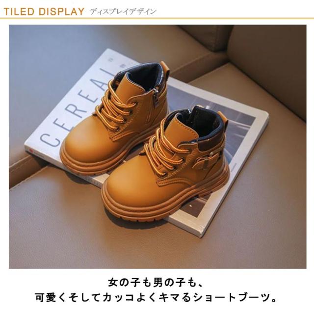 | 女の子も男の子も、可愛くそしてカッコよくキマるショートブーツ。 内張りの生地も柔らかくて肌触りがよく、通気性も抜群! 靴底がすべりにくい模様を使用しているため、滑り止めの効果あります。 ファスナーの着脱式で履きやすさUP!靴紐が結べない小さなお子様でも、ファスナーなら取り外し楽チン! シンプルでカジュアル、普段のコーデになじむデザインです。 | |