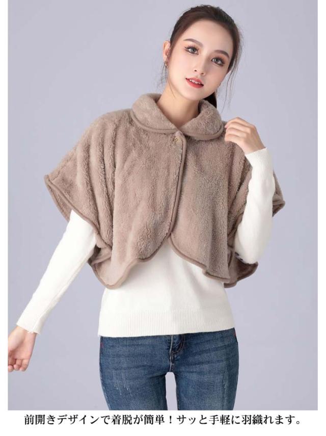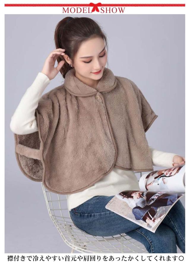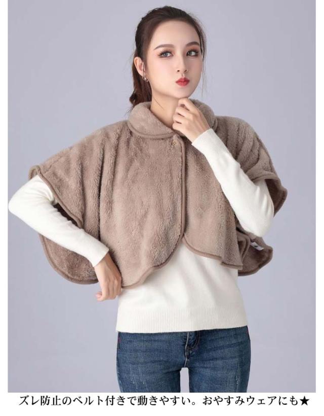 ポンチョ ケープ ルームウェア レディース ショルダーウォーマー 部屋着 前開き 羽織 肩掛け 肩当て 衿付き ケープ 防寒着 寒さ対策 秋 冬 無地 全6色