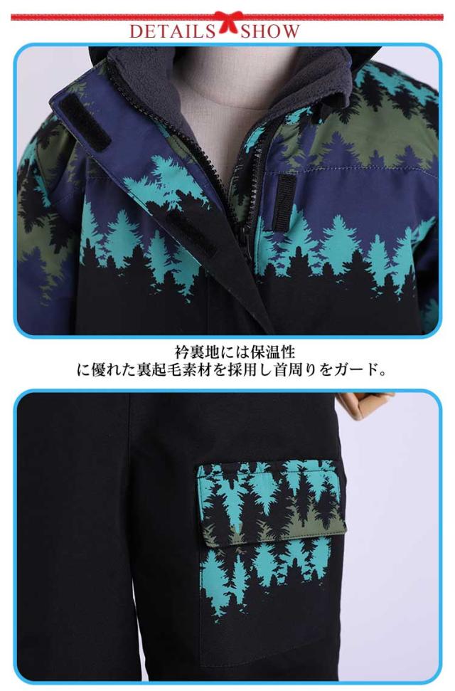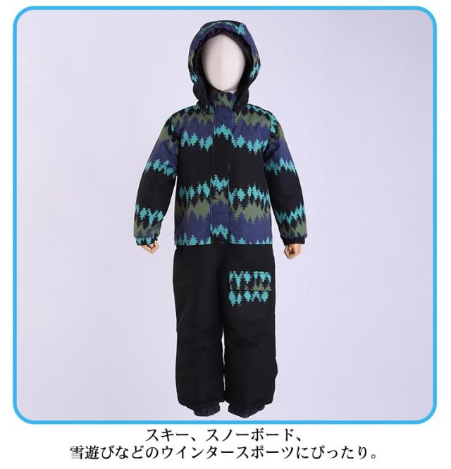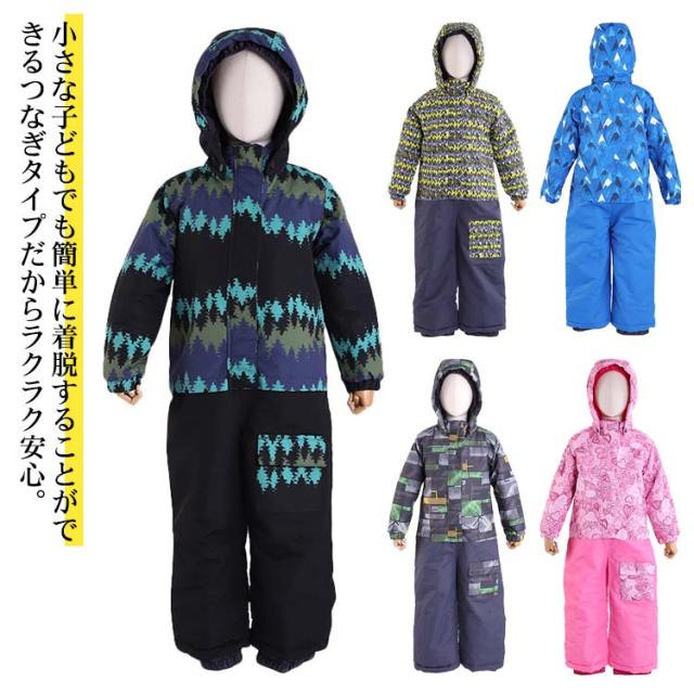 スキーウェア キッズ つなぎ 一体型 撥水加工 ジャンプスーツ スノーコンビ 防風 防雪 着脱可能フード フロントジップ 男の子 女の子 男女兼用 冬 スキー スノーボード 雪遊び ウインタースポーツ 幼稚園 保育園 プリント柄 全5柄