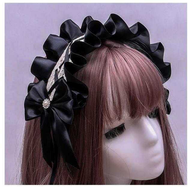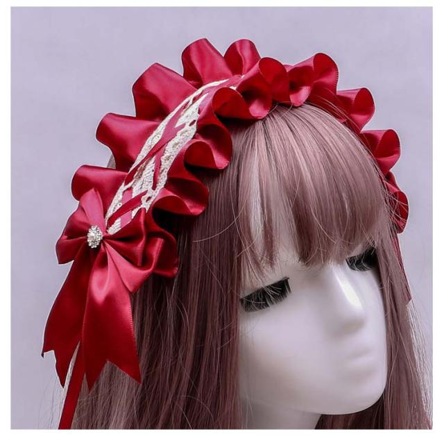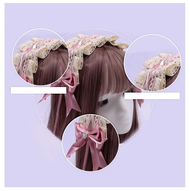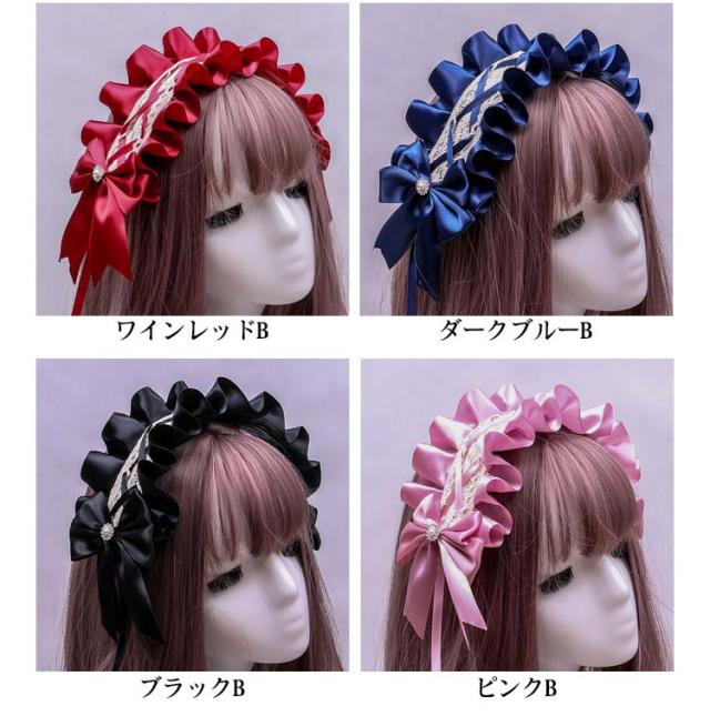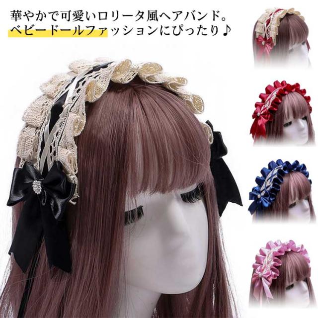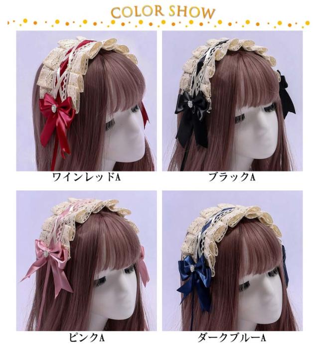 髪飾り ヘアバンド ロリータ風 コスプレ小物 ヘッドドレス ヘアアクセサリー 送料無料 メイド コスチューム ゴスロリ ハロウィン仮装 萌え リボン メイドカフェ お嬢様 レース