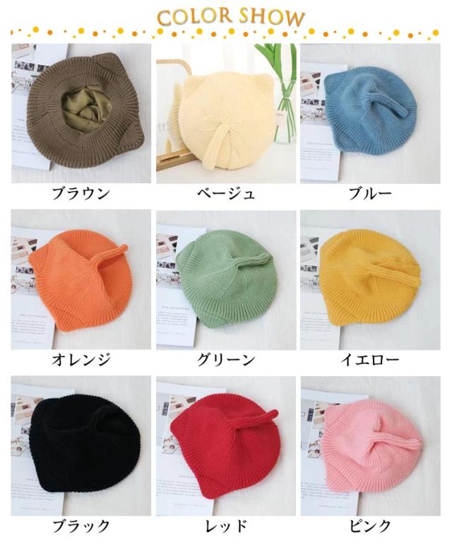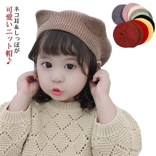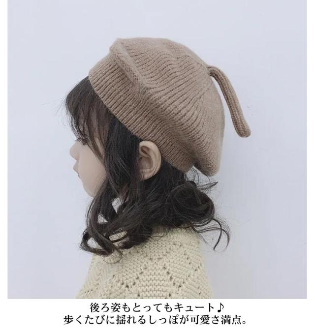 ベレー帽子 猫耳 帽子 キャップ キッズ ニット帽 女の子 男の子 秋冬 フリース裏地付き 防寒 しっぽ 子供 ベレー帽 ネコ 送料無料 韓国ファッション 無地 おしゃれ コスプレ