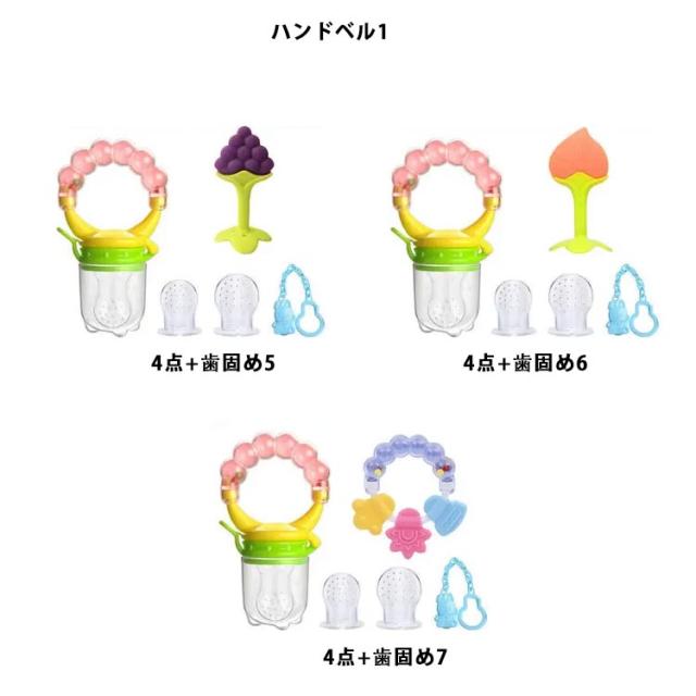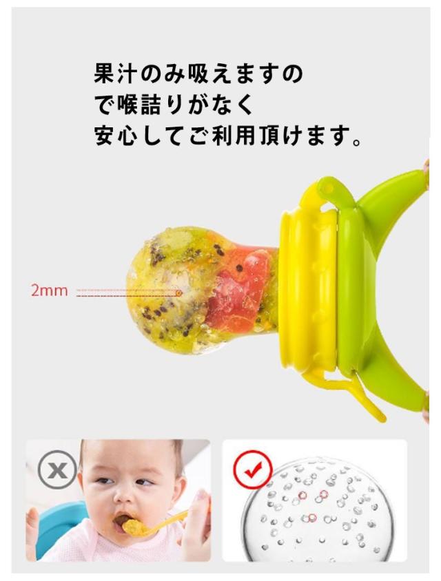 | ガラガラ手持デザイン、離乳食や果物を入れてお食事フィーダー。 3個サイズのシリコンフィーダーはカミカミしたい赤ちゃんにぴったり。 安全ロック付きなので、赤ちゃんに安心アイテムです。 カミカミすることであごへの運動を増やし、「吸う」から「噛む」へのステップアップを支えます。 おしゃぶりが苦手な赤ちゃんも楽しくおしゃぶりが出来、おしゃぶりの中にフルーツなどを入れるだけ! 果汁のみ吸えますので喉詰りがなく安心してご利用頂けます。 キャップ付きでおでかけにもぴったり、お薬を飲ませる時にも便利です。 | |