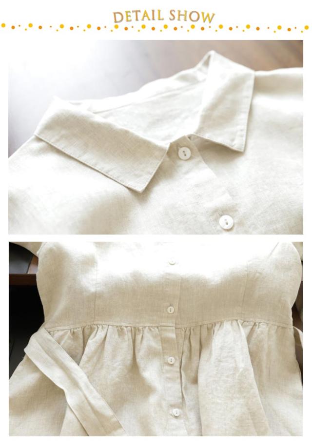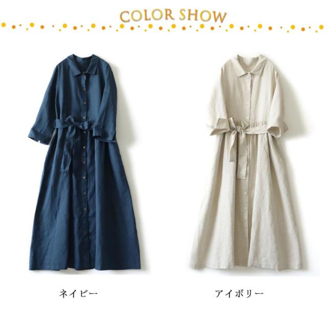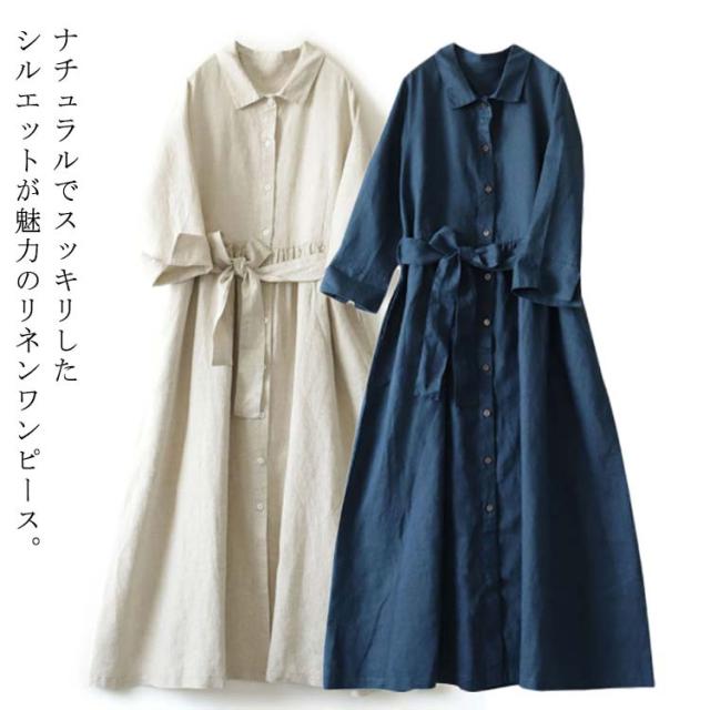 綿麻ワンピース リネン シャツワンピース 7分袖 カーディガン 羽織り Aライン ロング丈 レディース 送料無料 襟付き ギャザー 春夏秋 大きいサイズ 30代 40代 50代