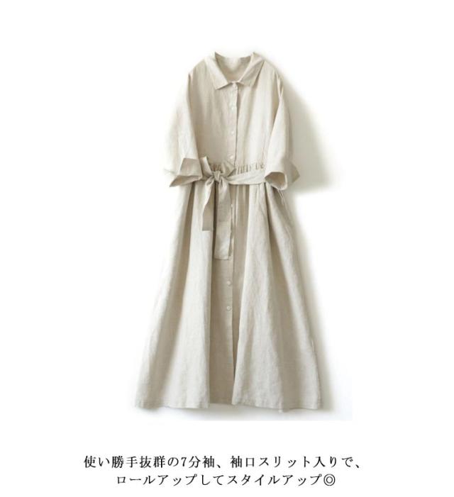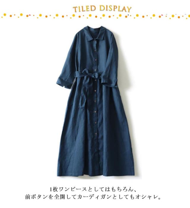 | ナチュラルでスッキリしたシルエットが魅力のリネンワンピース。 1枚ワンピースとしてはもちろん、前ボタンを全開してカーディガンとしてもオシャレ。 使い勝手抜群の7分袖、袖口スリット入りで、ロールアップしてスタイルアップ◎ 両サイド便利なポケットが配置され、機能性も◎ 無地でシンプルデザインながら大人らしい一枚で上品にまとまります。 | |