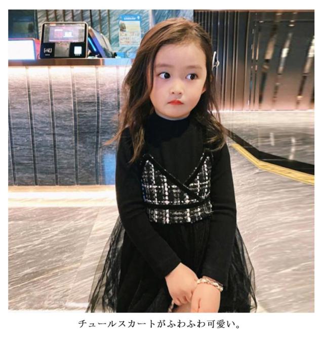 | 可愛らしさを演出した上品なレイヤード風ドレス。 ソフトで快適、丈夫で厚手の生地で、暖かさを演出。 チュールスカートがふわふわ可愛い。 発表会などのフォーマルな場面で着用した後は、普段のおしゃれ着にしてもOK! | |