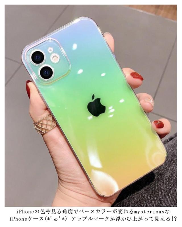 | iPhoneケース オーロラカラー ミラーケース 鏡 クリアケース TPU 透明 大人可愛い おしゃれ ファッション iPhoneの色や見る角度でベースカラーが変わるなiPhoneケース アップルマークが浮かび上がって見える!? ストラップホールのないスマート | |