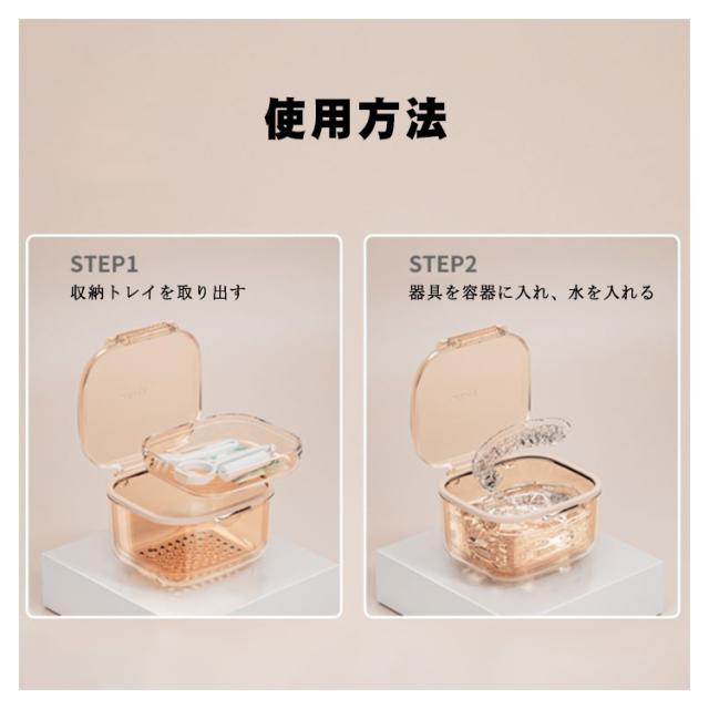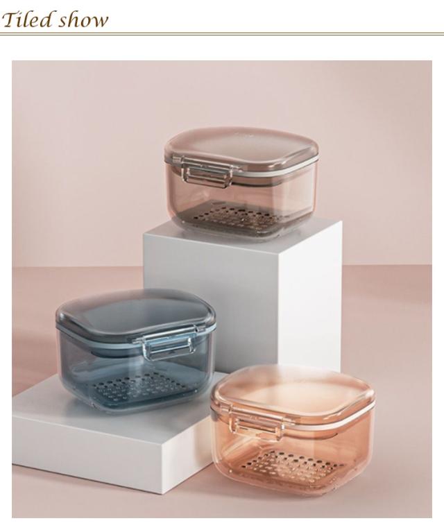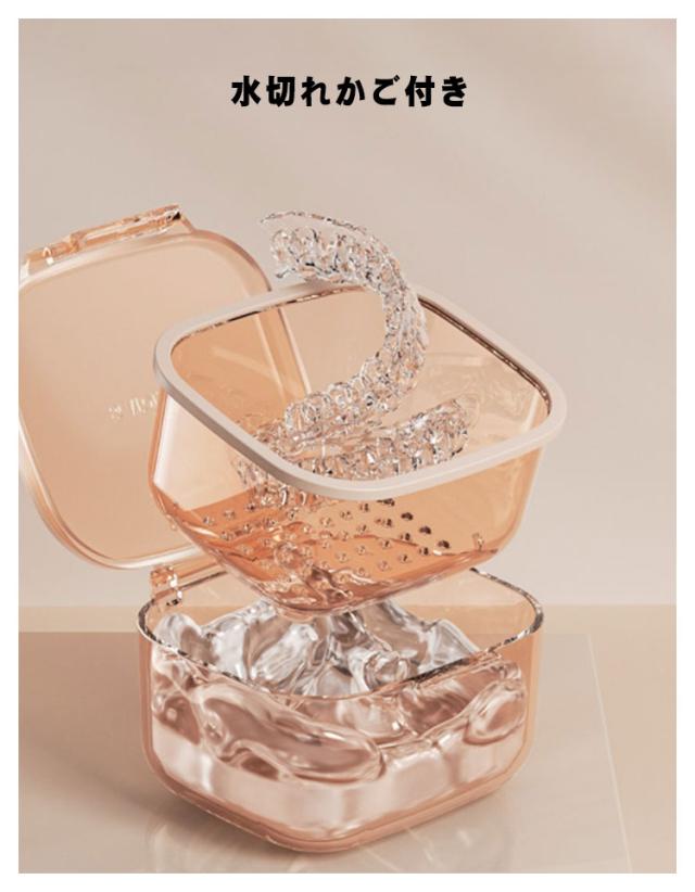 マウスピース ケース 入れ歯 洗浄 ケース リテーナーケース おしゃれ 入れ歯洗浄容器 保管 洗浄 水切りトレイ付 マット仕上げ 三重構造 義歯ケース 女性 男性 プレゼント ギフト