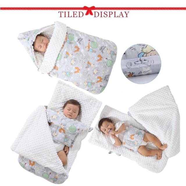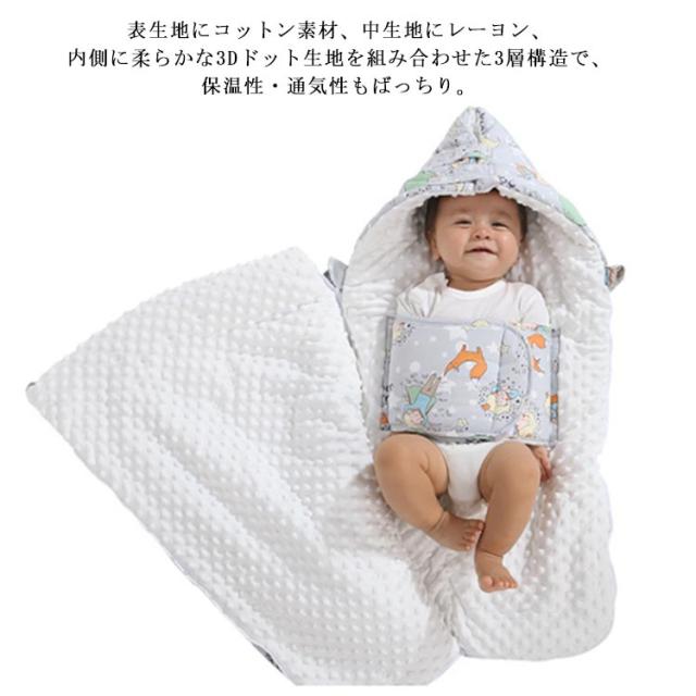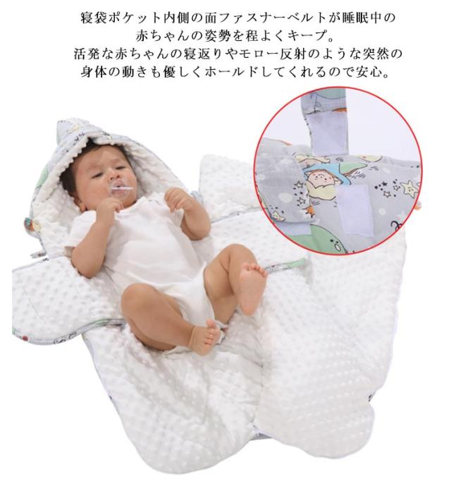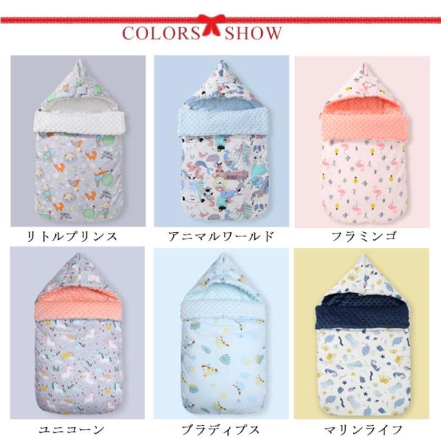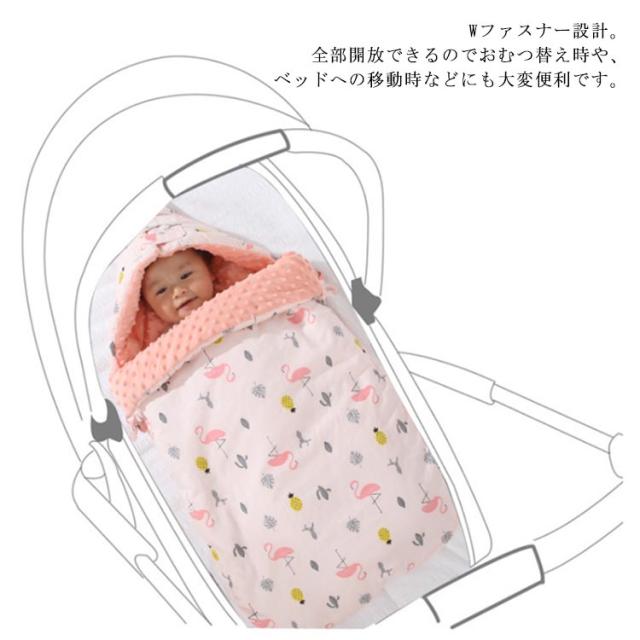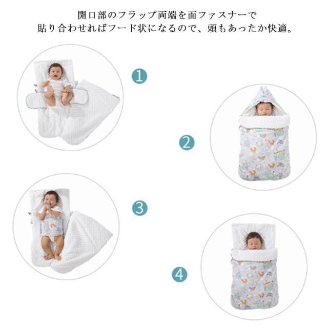 スリーピングバッグ 寝袋 おくるみ 抱っこ布団 ベビー 赤ちゃん 新生児 フード Wファスナー設計 中棉 丸洗いOK 男の子 女の子 かわいい お出かけ 防寒 秋 冬 全6柄