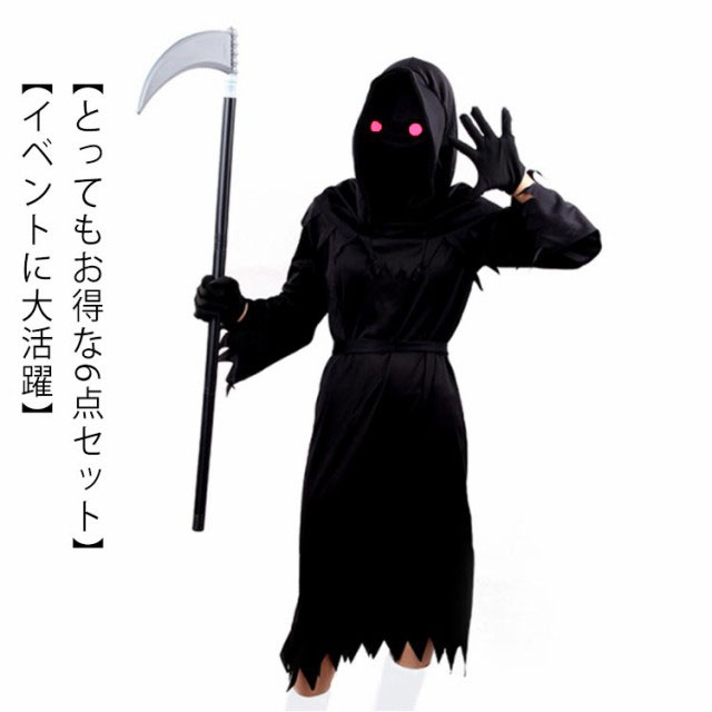 子供 死神 コスプレ 6点セット コスチューム 死神コス マスク 鎌 ハロウィン 仮装 小道具 かま お面 ホラー セット