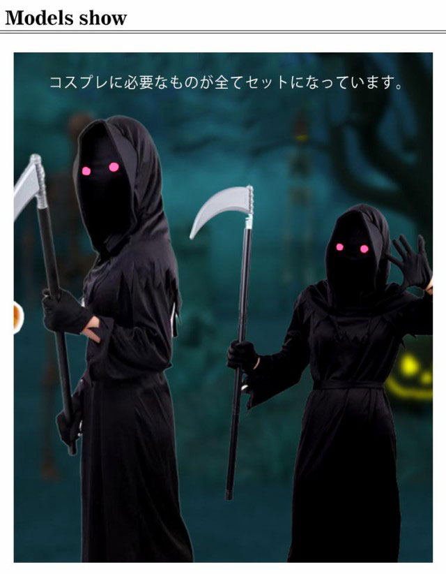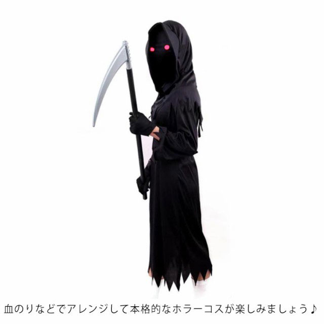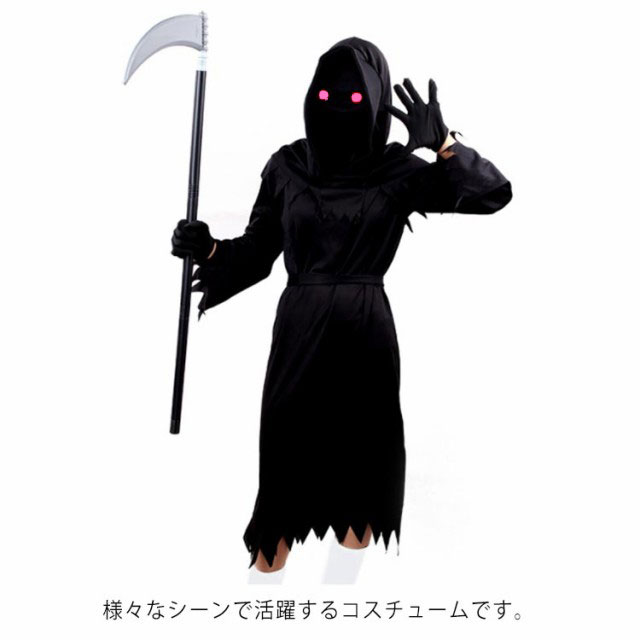 | サイズについての説明 | 6点セット:衣装+マント+手袋*2+眼鏡+大鎌 S 適応年齢4-5歳 M 適応年齢6-7歳 L 適応年齢8-9歳 XL 適応年齢10-11歳 |