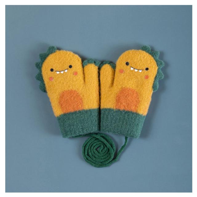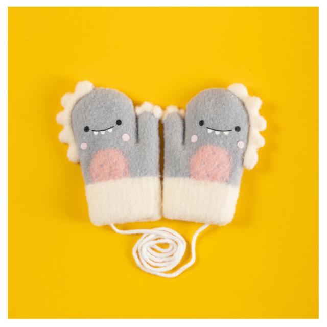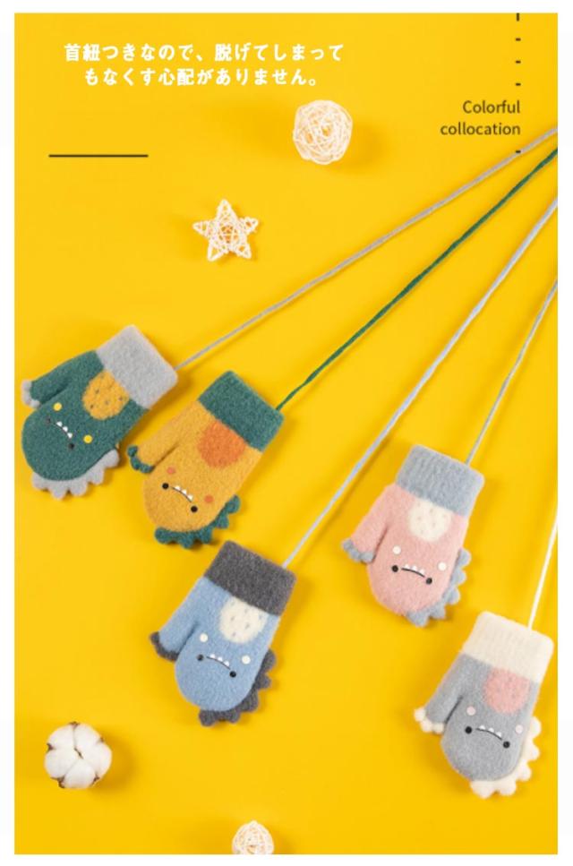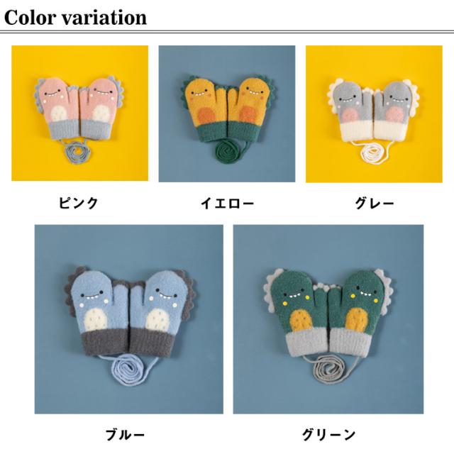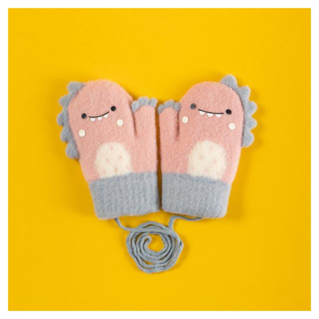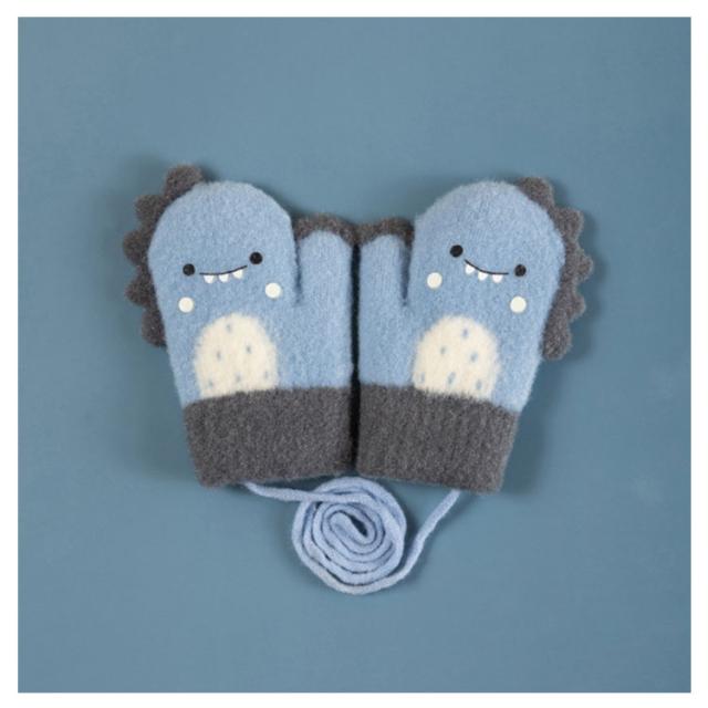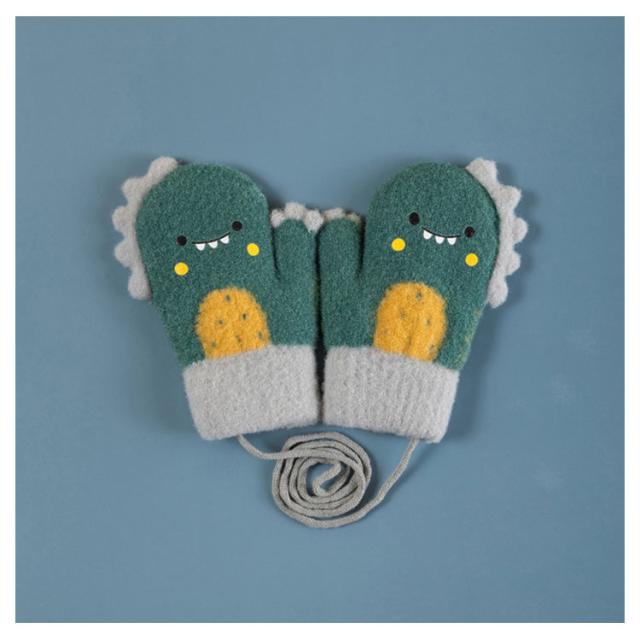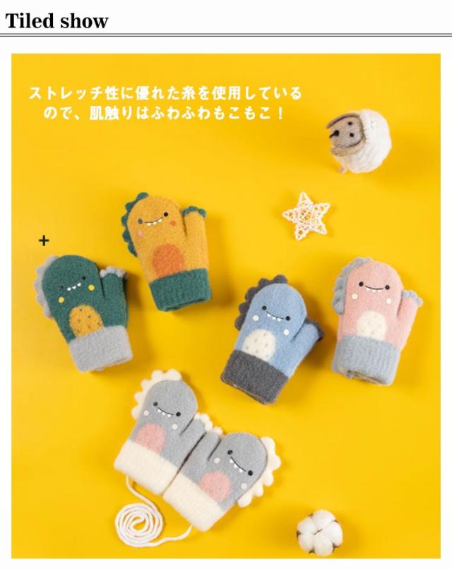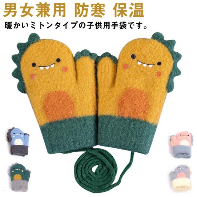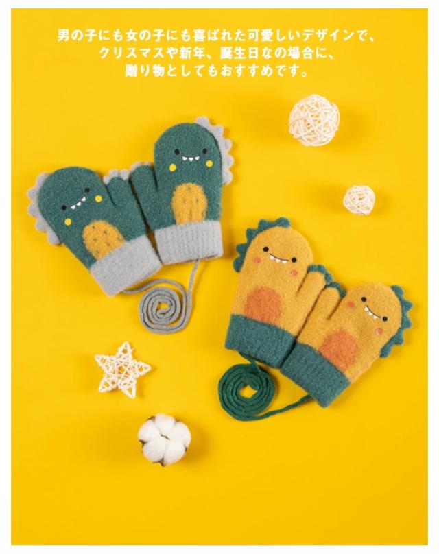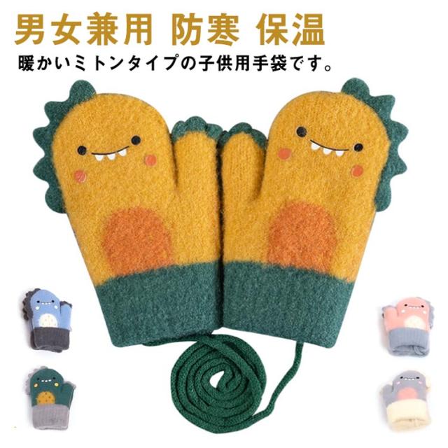送料無料 手袋 ミトン 子供用 1歳〜5歳 ベビー ニット キッズ かわいい 男女兼用 女の子 男の子 裏起毛 裏ボア 防寒 保温 グローブ ひも付き ミトン ハンドウォーマー ニット 指なしタイプ 赤ちゃん 厚手 恐竜 かわいい 雪遊び お出かけ 通園 通学 旅行 プレゼント