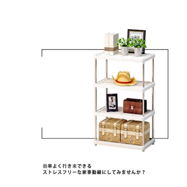 | デザイン性とゆとりを重視したオープンラック! キッチンカウンターなどの下に置くと、毎日使うキッチンアイテムをいろんな方向から取り出すことができます。 効率よく行き来できるストレスフリーな家事動線にしてみませんか? お洒落なオープンラックとして、インテリアのアクセントになります。 デザイン性とゆとりを重視したインテリア設計です。 支柱はステンレスを採用し、強度・耐震性を強化しています。 工具なしで簡単に組み立てられます。 ランドリー収納としてだけでなく、食器棚横、冷蔵庫・シンク横、トイレ収納としても。 | |