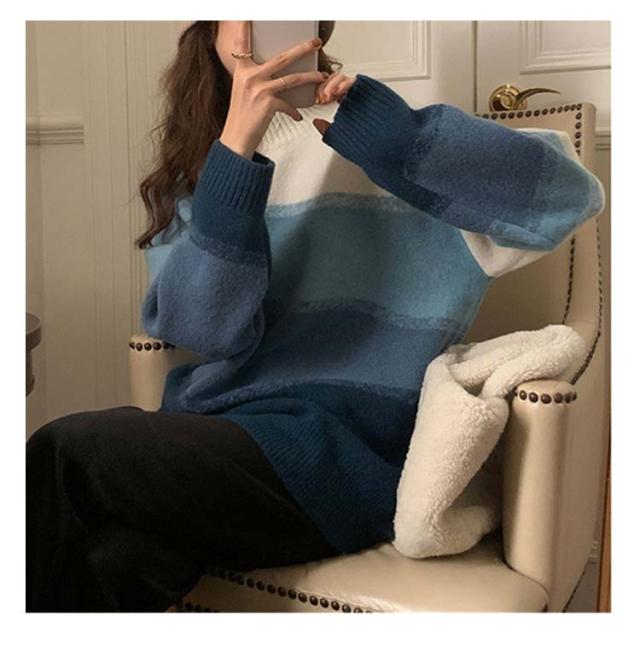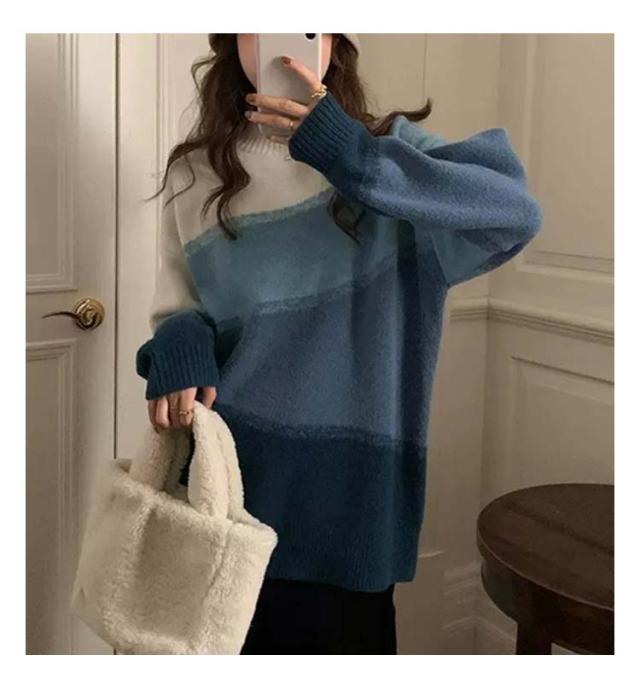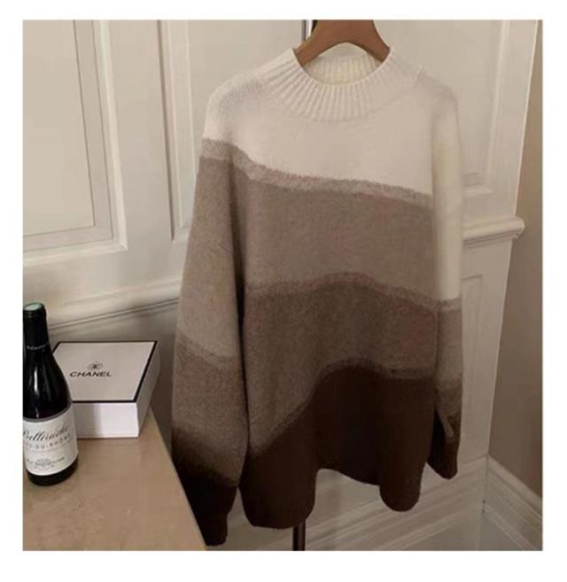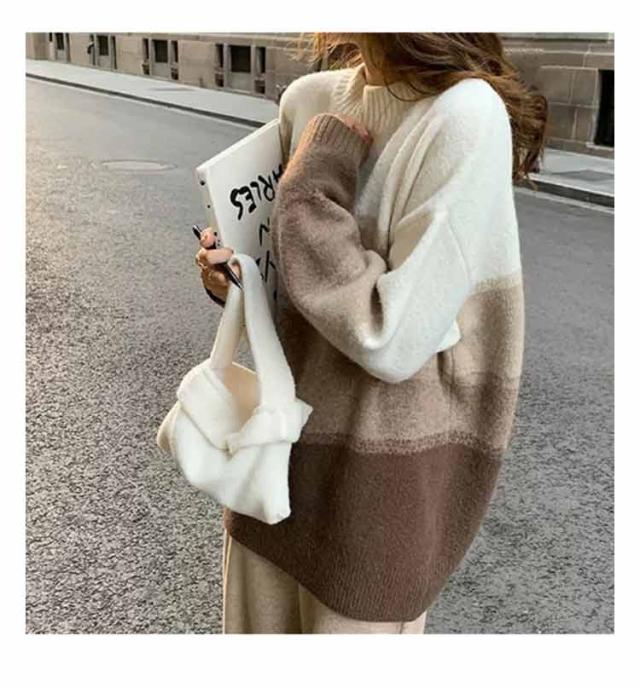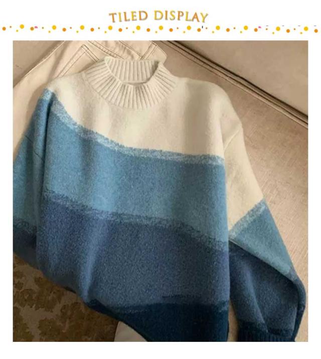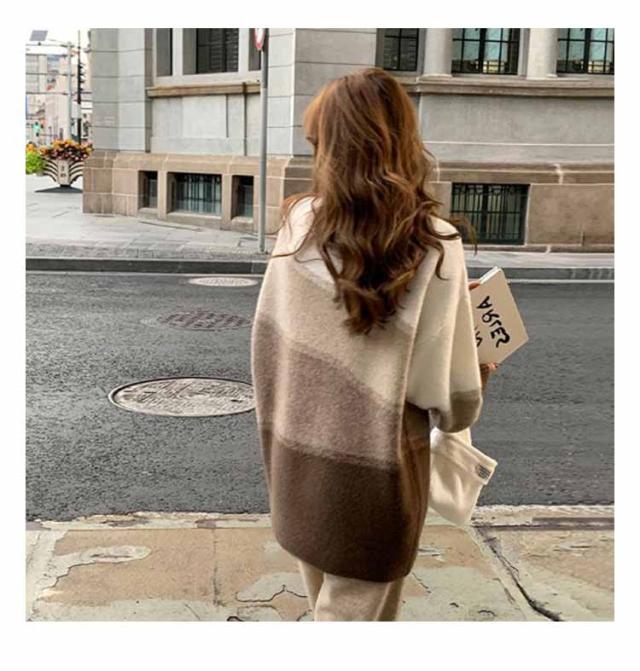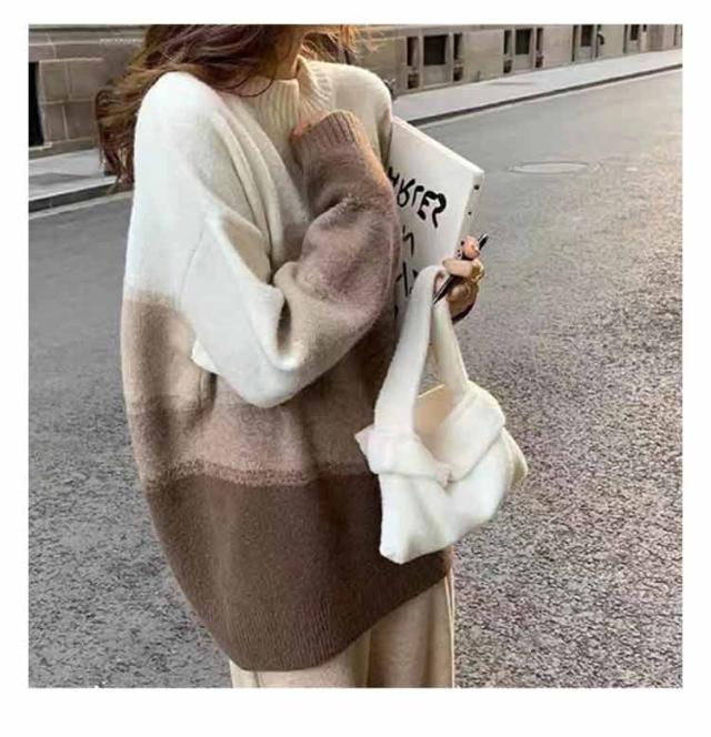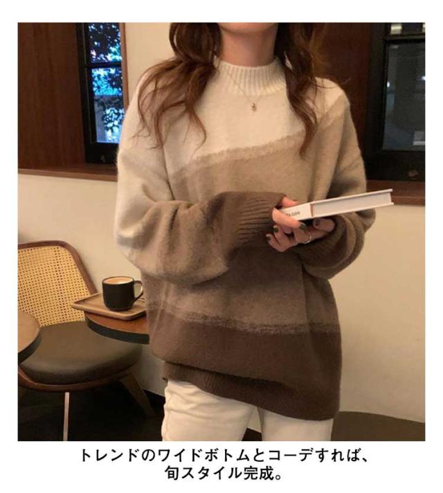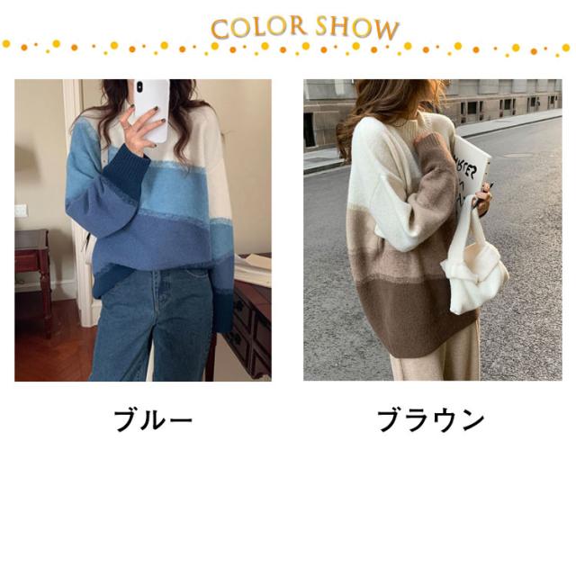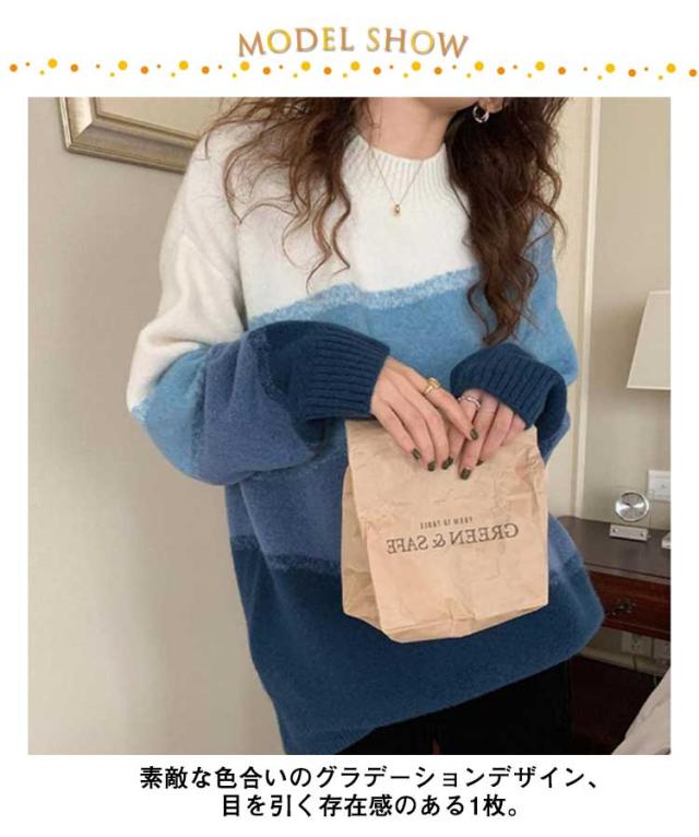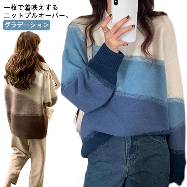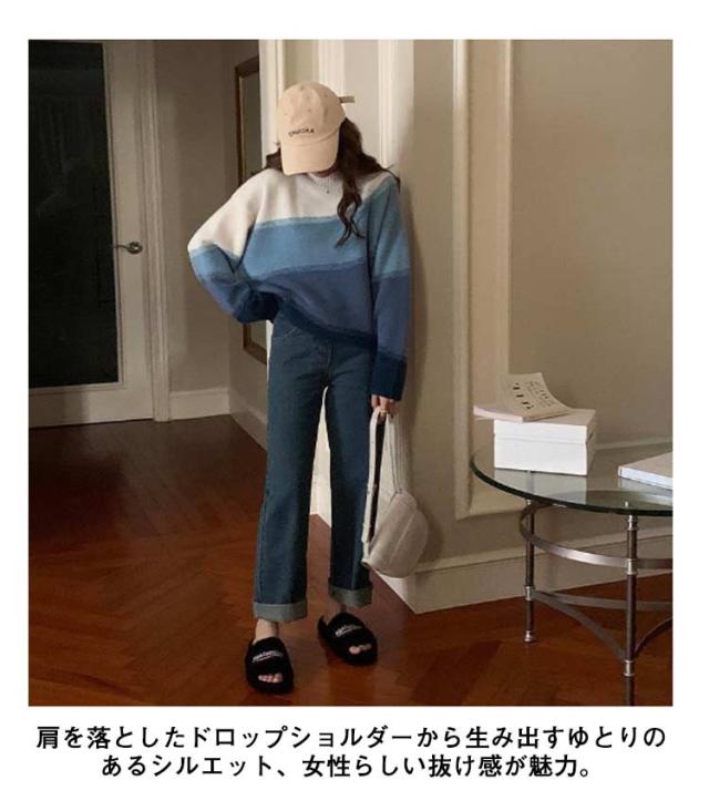 ニット 長袖 セーター グラデーション ボーダーニット レディース ドロップショルダー ニットプルオーバー 着痩せ 体型カバー 可愛い 韓国ファッション