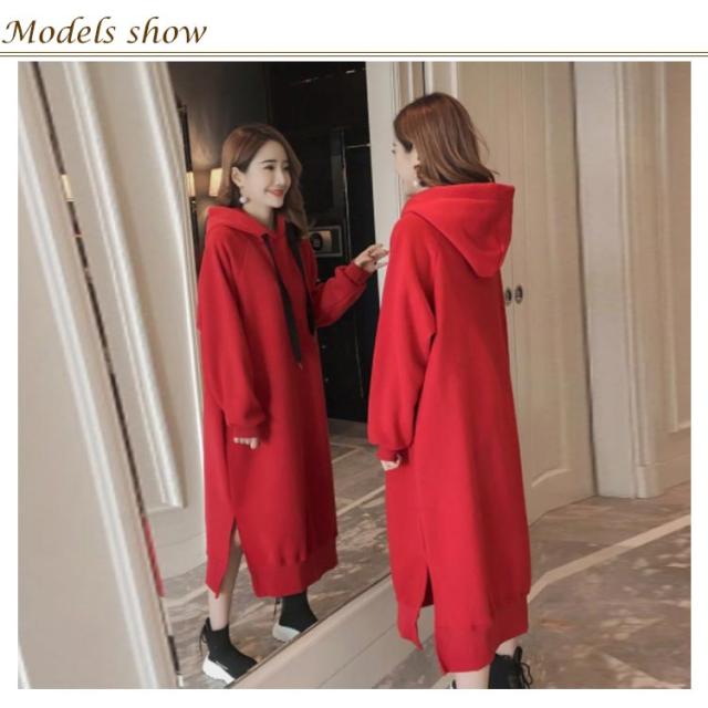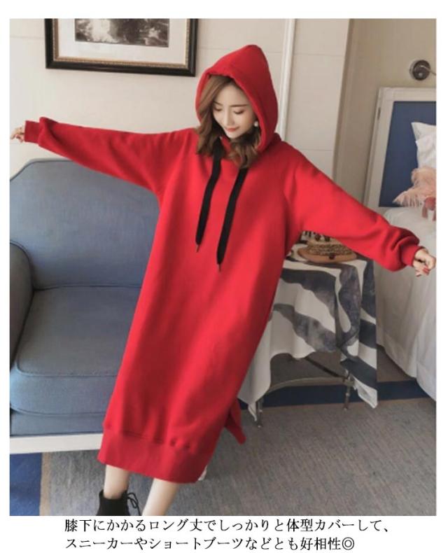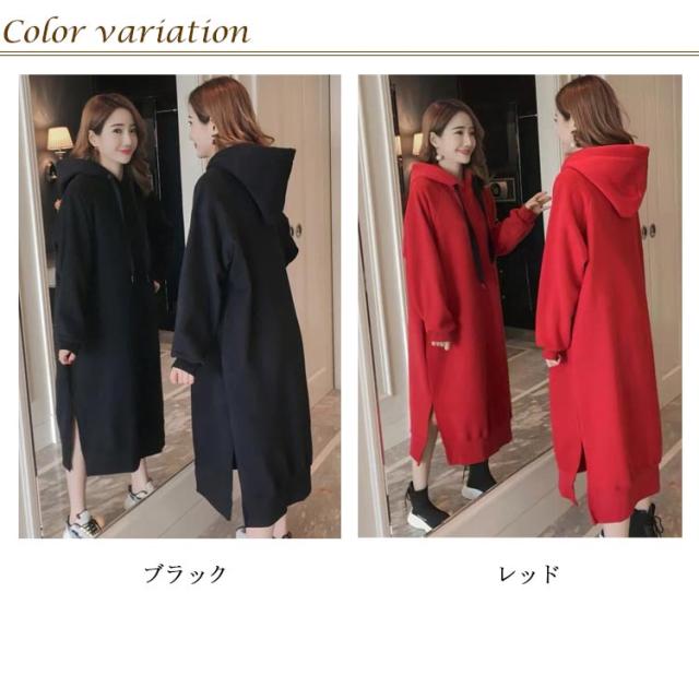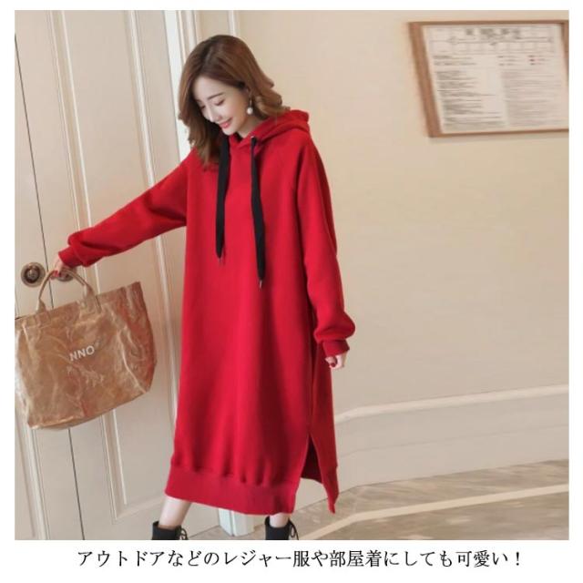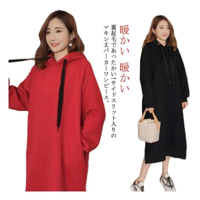 裏起毛であったかい!ロングパーカーワンピース ワンピース パーカーワンピース マキシワンピース フード付き パーカワンピ スリット ロングワンピース 裏起毛 ゆったり 暖かい 秋冬 体型カバー