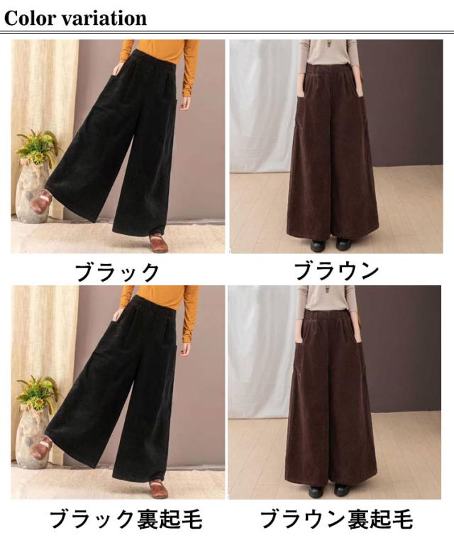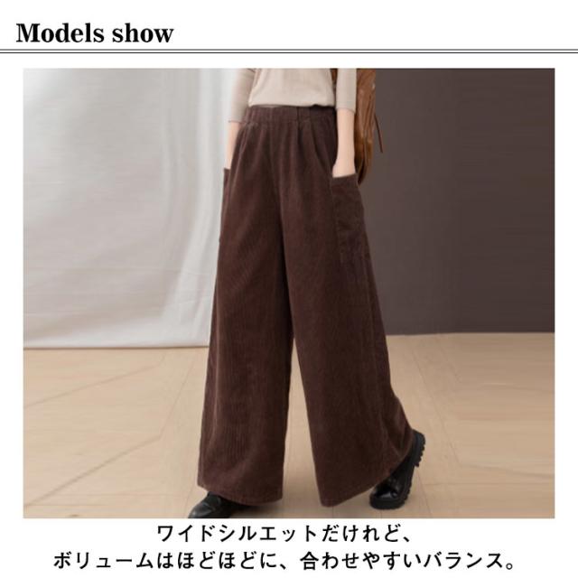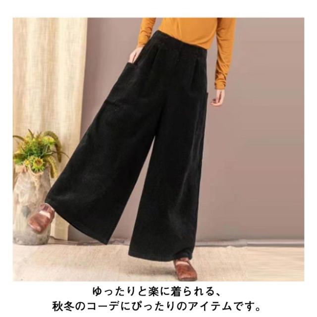 コーデュロイパンツ ワイドパンツ コーデュロイ フレアパンツ ガウチョパンツ ロング丈 ボトムス パンツ ウエストゴム ゆったり 大きいサイズ