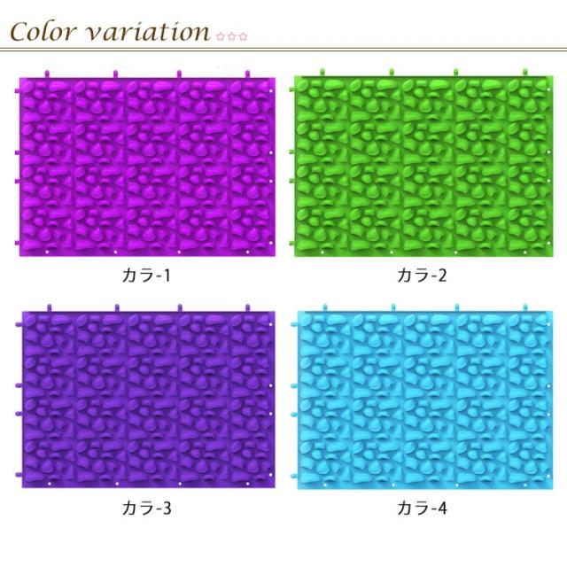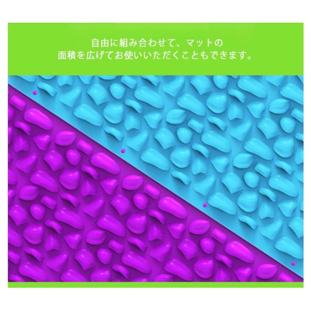 | 足裏の筋肉をほぐすことができる足ツボマッサージマットです。 全体に凹凸を施しているので、ツボ押し部分はしっかり刺激で血行促進! 場所をとらないので、いつでもどこでも使用することができます。 自由に組み合わせて、マットの面積を広げてお使いいただくこともできます。 なかなか運動を続けられない方に!お家、オフィス、キッチン等で運動不足の人にお勧めです。 | |