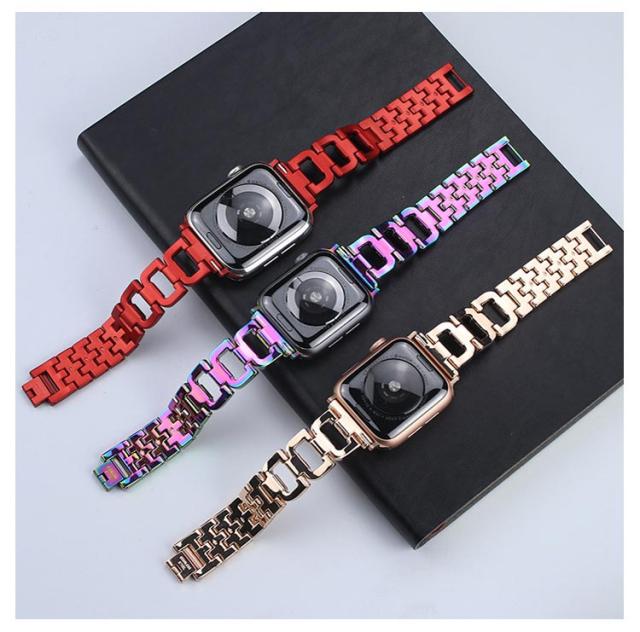 | 【商品名】 Apple Watch用バンド(※AppleWatch本体は付属しておりません) 【素材】合金 【サイズ】38mm・40mm・41mm、42mm・44mm・45mm・49mm 【特徴】さりげないお洒落で高級感を演出♪ぱっと見た瞬間、溢れるメタルの高級感に目が惹かれます。上品な光沢で質感をアップし、重量感と高級感もあり、落ち着いた印象はスーツスタイルにもぴったりで、ビジネスシーンにもよくマッチする。長さの調整ができるのも魅力です。Apple Watchのお洒落をお楽しみください♪ | |
