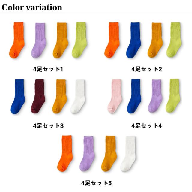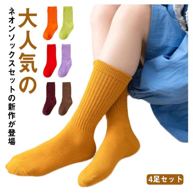 キッズ ネオン カラー ソックス ネオンソックス 4足セット 1-12歳 綿 コットン 子供服 キッズ 靴下 韓国ファッション 韓国 派手 ソックス ハイソックス