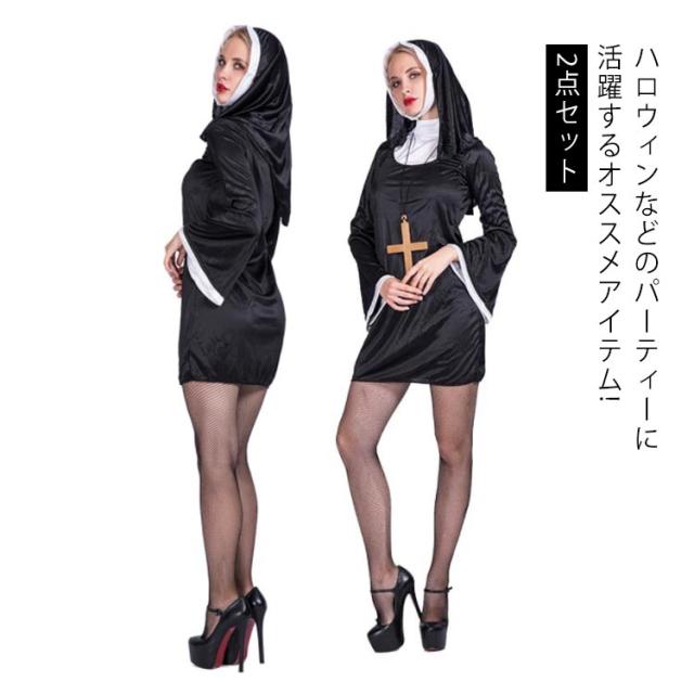2点セット ハロウィン衣装 レディース 修道女 魔女 巫女 コスプレ 悪魔 ワンピース コスチューム 女子 衣装 万聖節 イベント halloween 帽子付き 仮装 チュール ワンピース ハロウィン 仮装 大人用