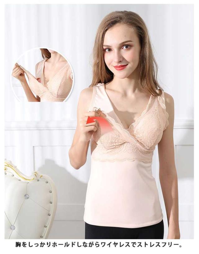授乳キャミソール ブラカップ付き 裏起毛 裏ボア ノンワイヤー マタニティ 前開き 授乳用 タンクトップ 送料無料 産前 産後 インナー 下着 秋 冬 もこもこ あったか