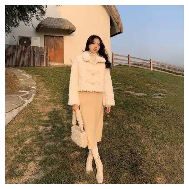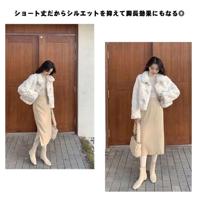 小柄にお薦め!ファーコート 毛皮 フェイクファー ムートンコート ファイクムートン ボア ジャケット ステンカラー ショート丈コート ふわふわ もこもこ アウター コート 通学 秋冬 冬服 おしゃれ 可愛い