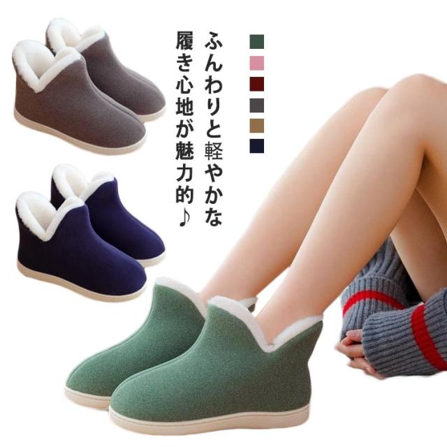 ルームシューズ 裏ボア レディース メンズ 裏起毛シューズ ルームブーツ 男女兼用 室内履 ふわふわ 軽量 暖かい 防寒 冷え対策 ショートブーツ 21.5-28cm