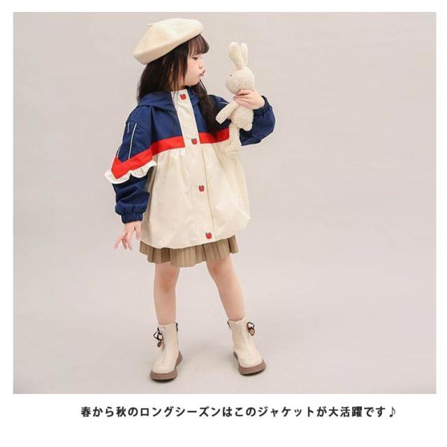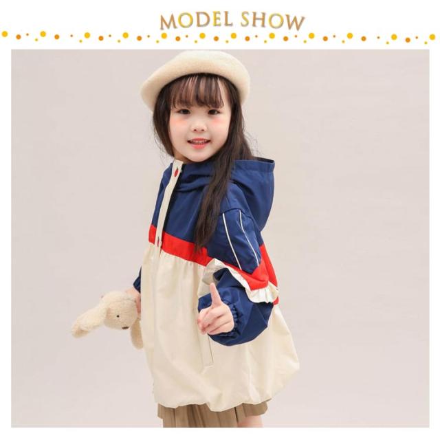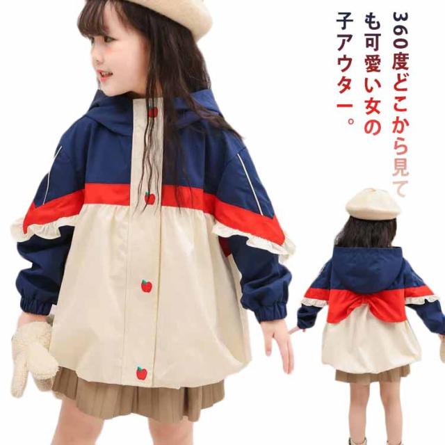 ジャケット キッズ ブルゾン マウンテンパーカー 女の子 110-160cm ウインドブレーカー 子供服 コート 薄手 防風 フリル 配色 フード付き 春秋 アウター ジュニア 可愛い 110cm 120cm 130cm 140cm 150cm 160cm
