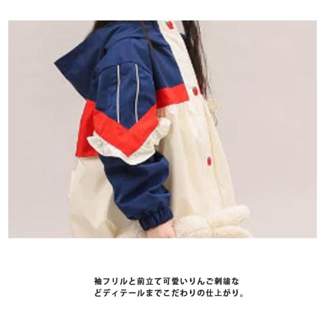 | 360度どこから見ても可愛い女の子アウター。 可愛さ×スポーティーな雰囲気MIXした女の子らしいフーディージャケット。 袖フリルと前立て可愛いりんご刺繍などディテールまでこだわりの仕上がり。 ゆったりとした身幅で中に着るインナーを選ばないのも魅力的。 春から秋のロングシーズンはこのジャケットが大活躍です♪ | |