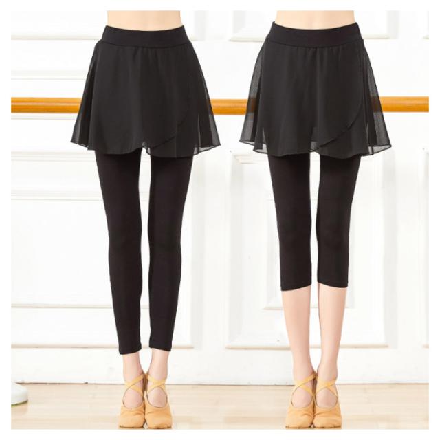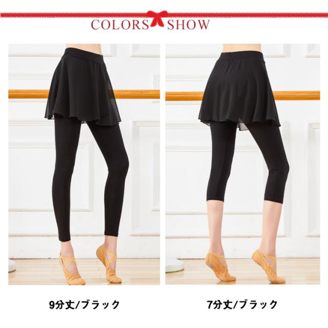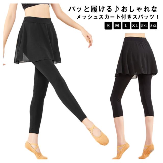 バレエ スパッツ付きスカート メッシュスカート レディース 大人 ストレッチ 伸縮性 動きやすい 柔らかい 履きやすい レッスン着 練習着 ダンス シンプル おしゃれ 新体操 社交ダンス 7分丈 9分丈 選べる丈 ブラック