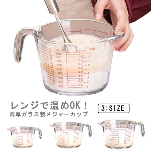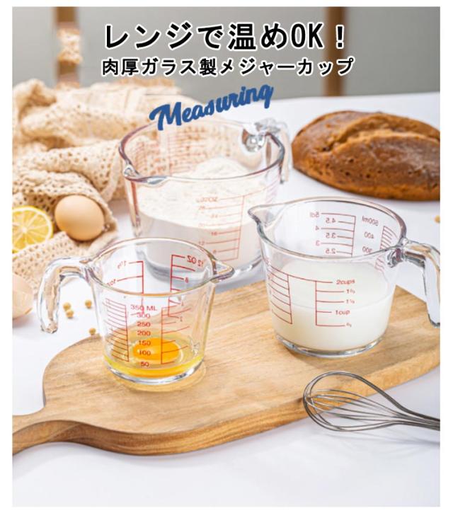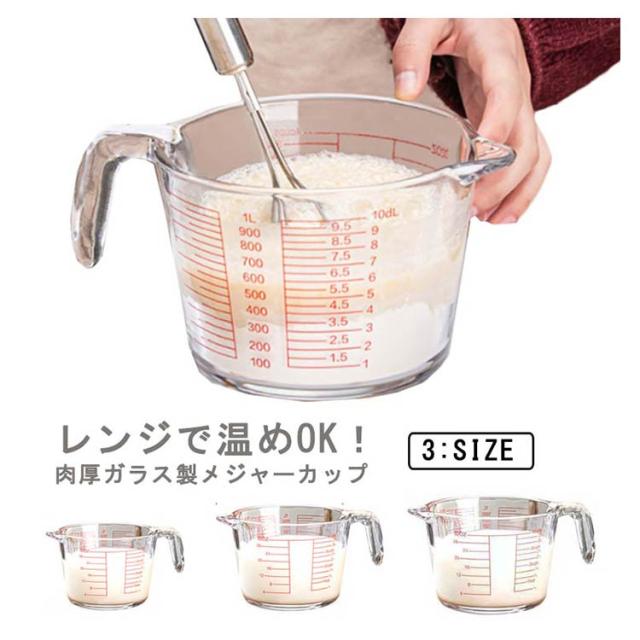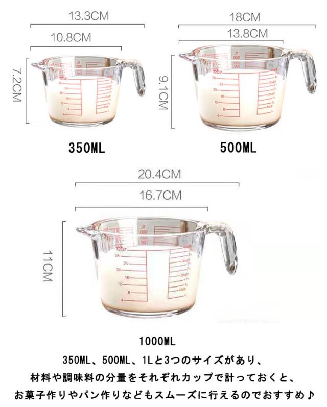 【送料無料】計量カップ 耐熱ガラス メジャーカップ 350ml/500ml/1L 取っ手付き カップ 目盛付き 食洗機 電子レンジ オーブン対応 冷凍 冷蔵 保存 強化ガラス 目盛り付き 調理クリア 大容量 ワイド 注ぎやすい キッチンツール