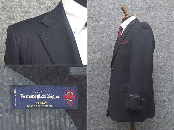 秋冬物 [Ermenegildo Zegna]ゼニア生地 ELECTA使用 セミスタイリッシュ2釦スーツ 紺系/ストライプ 日本製 [AB体][BB体] EZ-J09