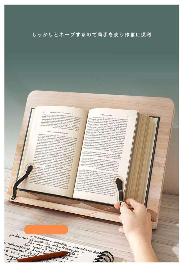 | 勉強・読書・仕事などそれぞれのシーン・用途に合わせ、8段階の角度調節が可能。 背面スタンドと全面の下部にある細い板が、折りたたみ収納可能となっております。 しっかりとキープするので両手を使う作業に便利。 勉強や読書にはもちろん、レシピ本を広げたままの料理などキッチンでの使用にもおすすめ! | |