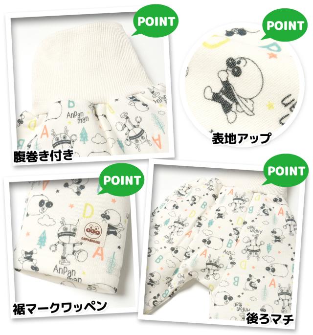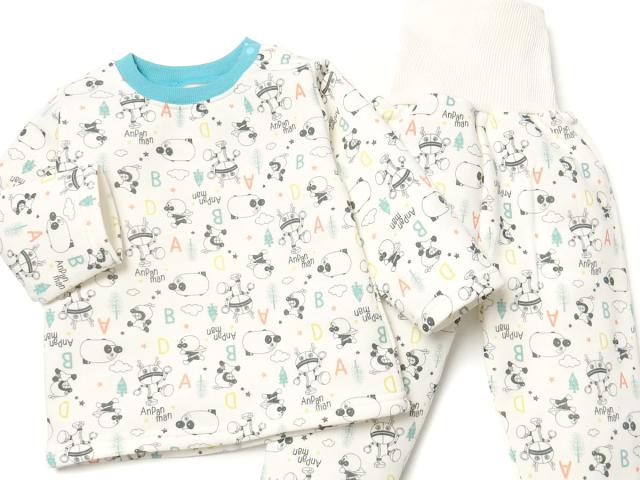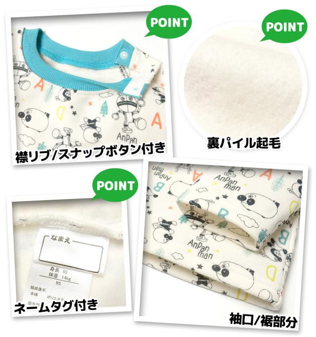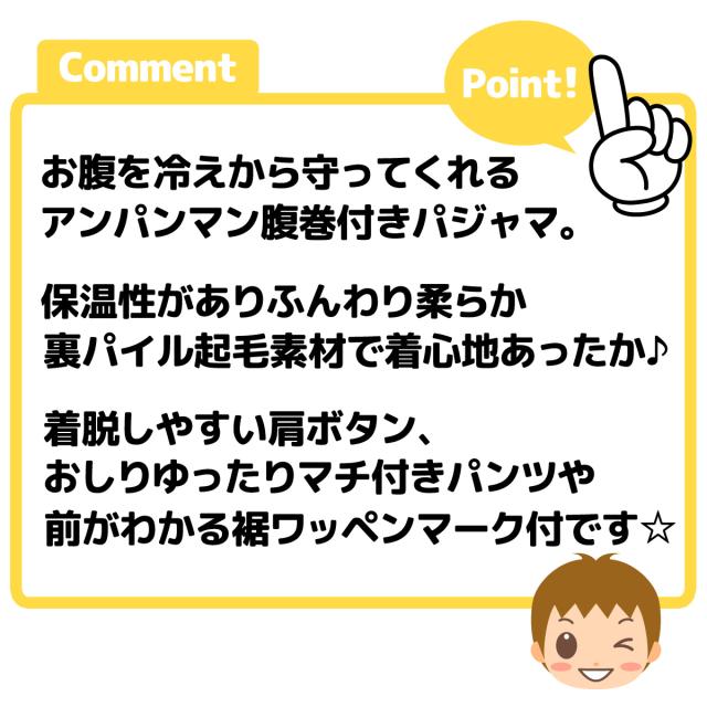 【送料無料】男児 ベビー 腹巻付 長袖 パジャマ 裏パイル起毛 アンパンマン あったか素材 保温性 上下組 後ろマチ 前がわかるマーク付 男の子 80cm 90cm 95cm iw-0670【メール便対応】
